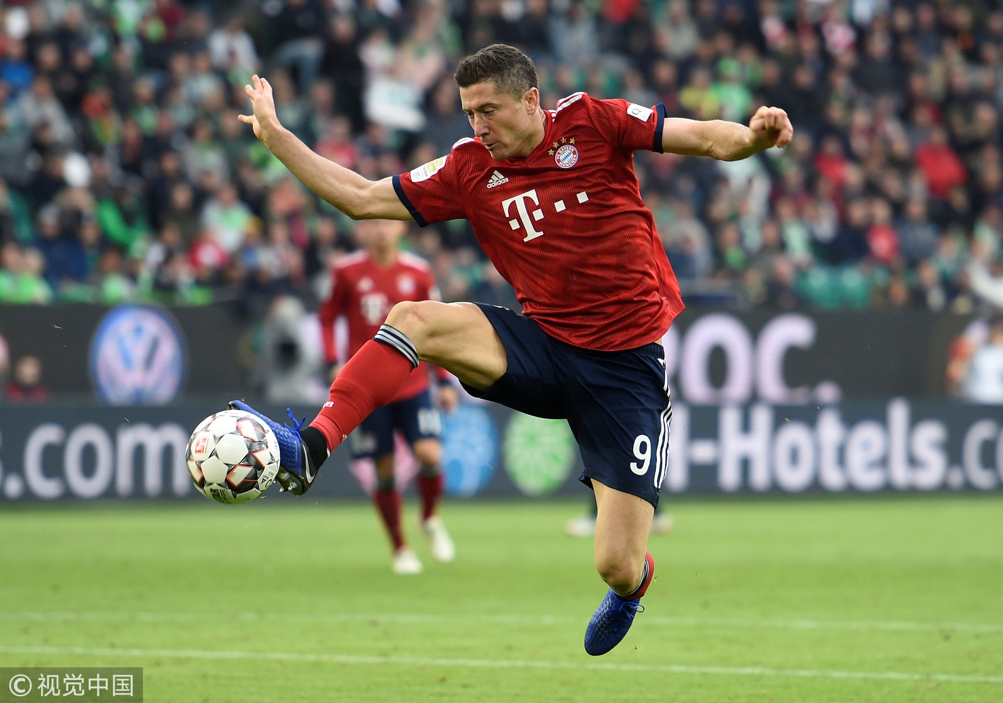 Bayern Munich's Robert Lewandowski in action during the match against Wolfsburg in the Bundesliga, Volkswagen Arena, Wolfsburg, Germany, October 20, 2018 /VCG Photo