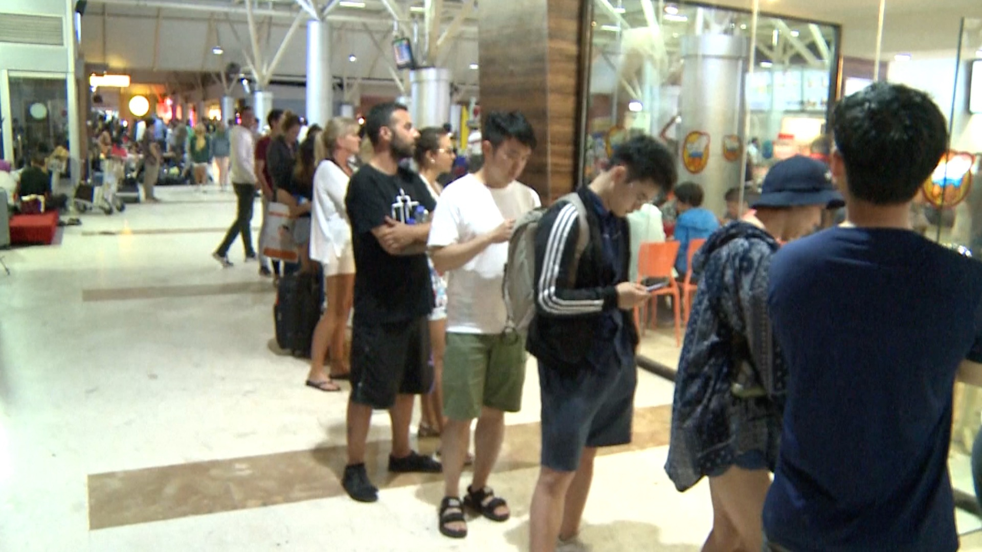 Hundreds of people attempt to leave Gili Trawangan, north of the neighboring Lombok island, a day after a powerful earthquake struck the area, August 6, 2018. /VCG Photo