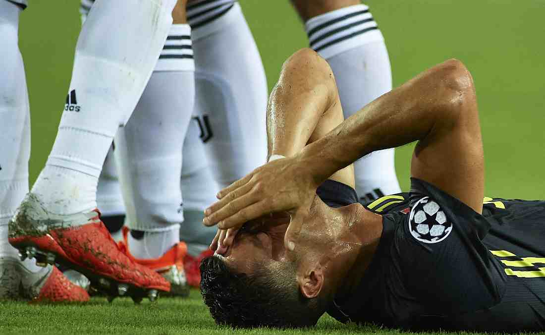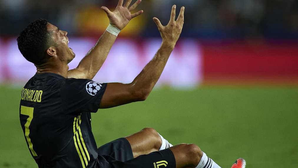 Ronaldo's Champions League debut for Juventus lasted less than half an hour as the Portuguese star was red-carded after a collision with Valencia defender Jeison Murillo.