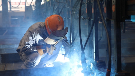 New technologies are introduced for ship manufacturing at Mawei's factory./ CGTN photo