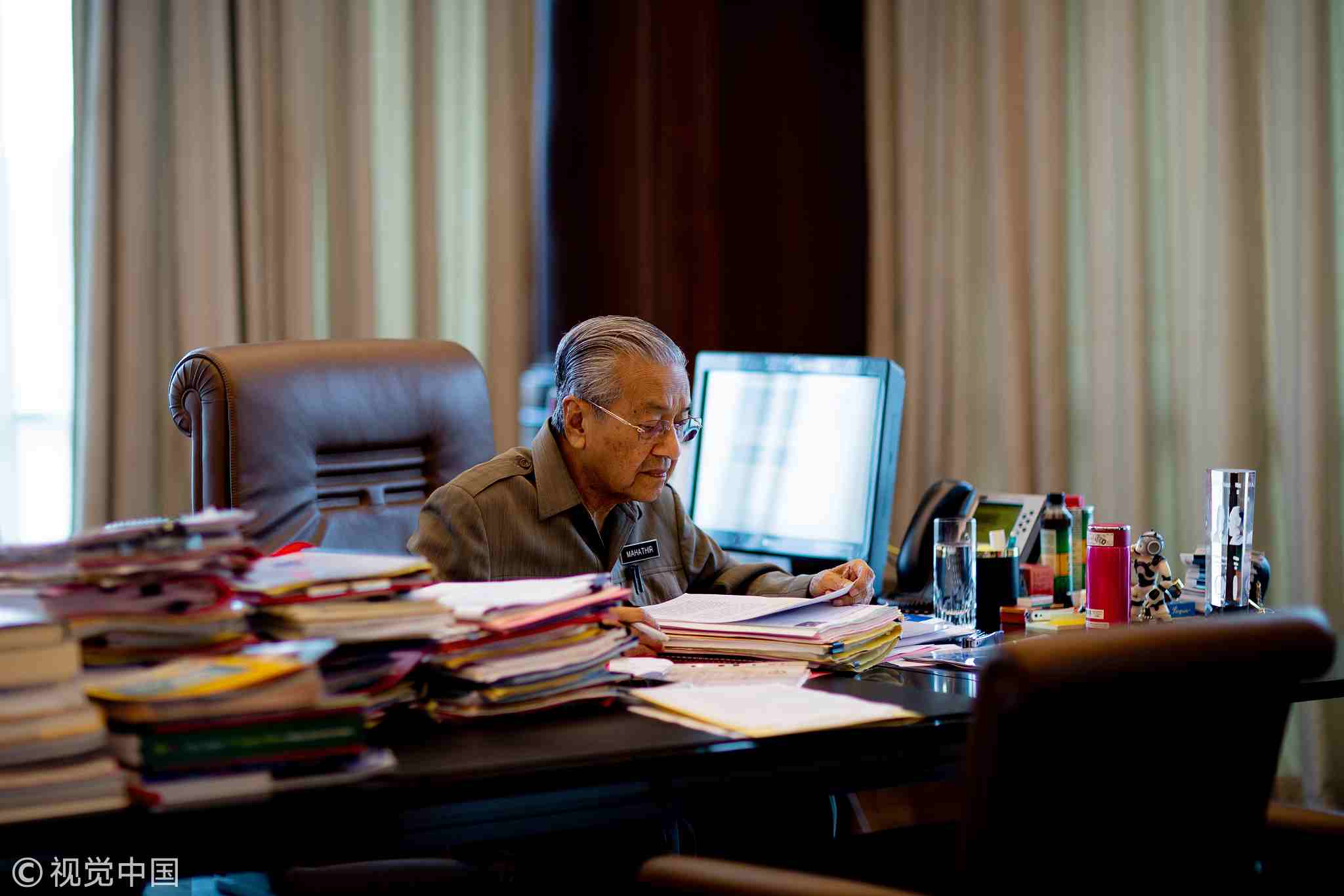 Mahathir Mohamad, Malaysian prime minister, working in his office in Kuala Lumpur on Friday, June 22, 2018. /VCG Photo