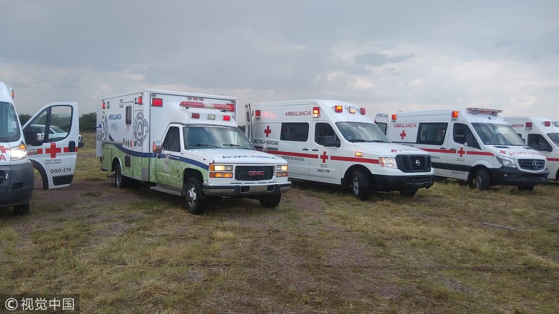 Ambulances are parked at the site where an Aeromexico passenger jet crashed in Mexico's northern state of Durango, July 31, 2018. /VCG Photo
