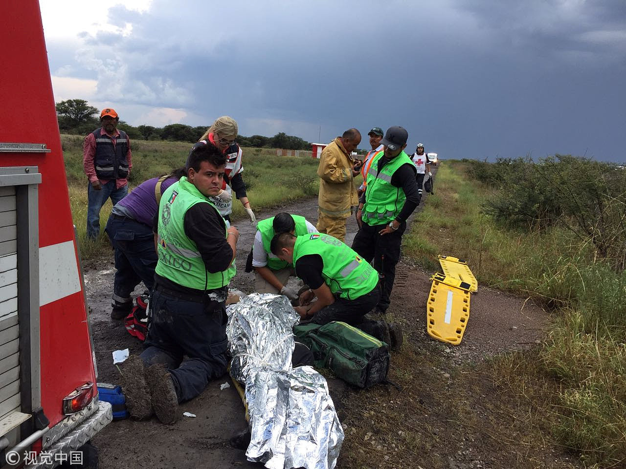 Paramedics attend to a victim near the site where an Aeromexico passenger jet crashed in Mexico's northern state of Durango, July 31, 2018. /VCG Photo
