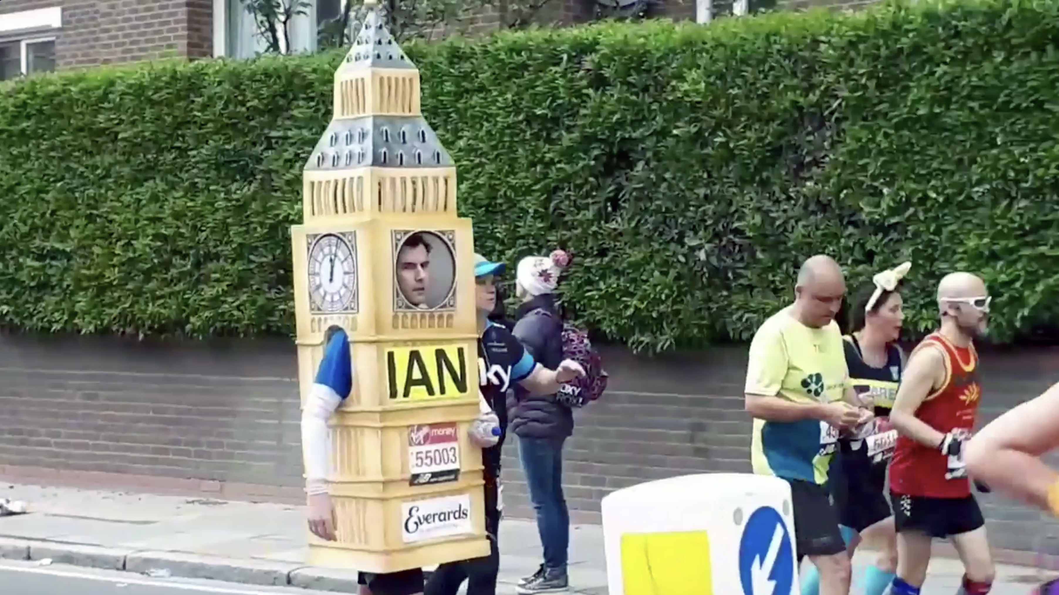 The London Marathon has a proud tradition of eccentric and bizarre outfits. This year's race was no exception. Highlights of costumed runners this year include Big Ben, Thunderbirds, Jesus Christ on the cross and Paddington Bear.