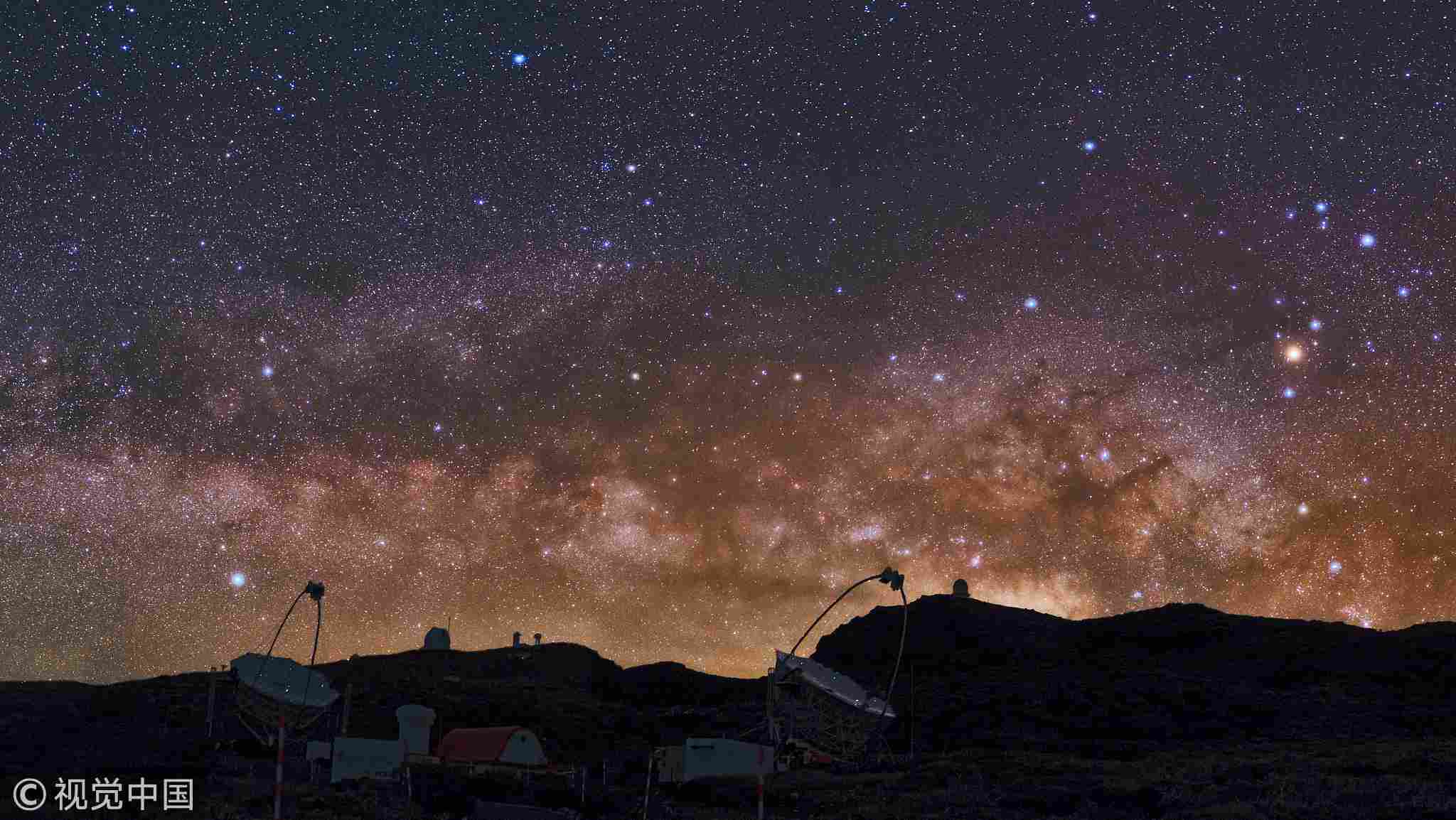 The Milky Way rises over an observatory atop of La Palma Island, at 2,400 meters. /VCG Photo