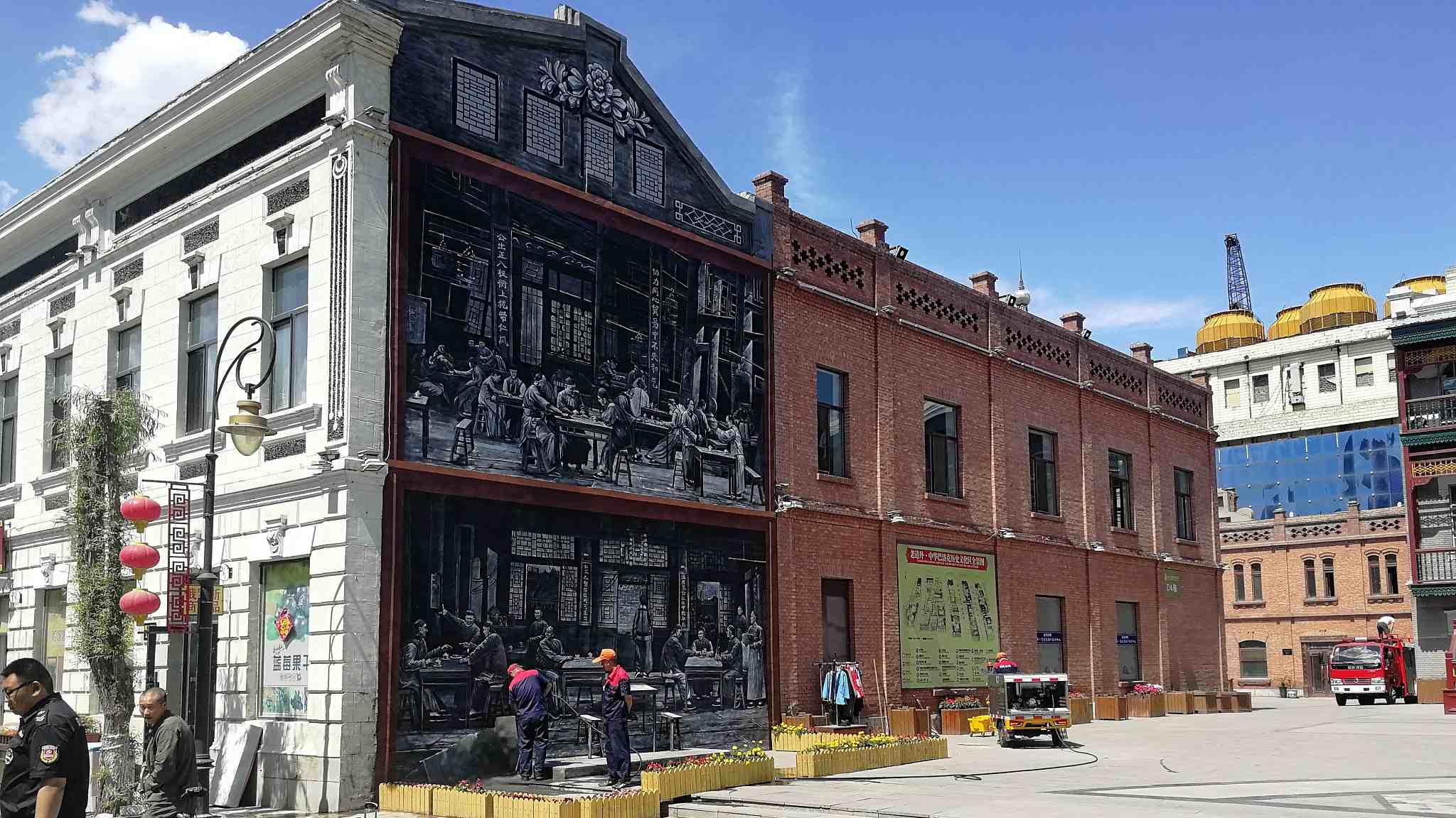In Dao Wai district, Harbin City in northeastern China’s Heilongjiang Province, the scene at its Chinese-Baroque Historic Block is hard to miss. On one side of the buildings, a 3D mural brings the bustling scenes of a Chinese teahouse back to life. /VCG Photo