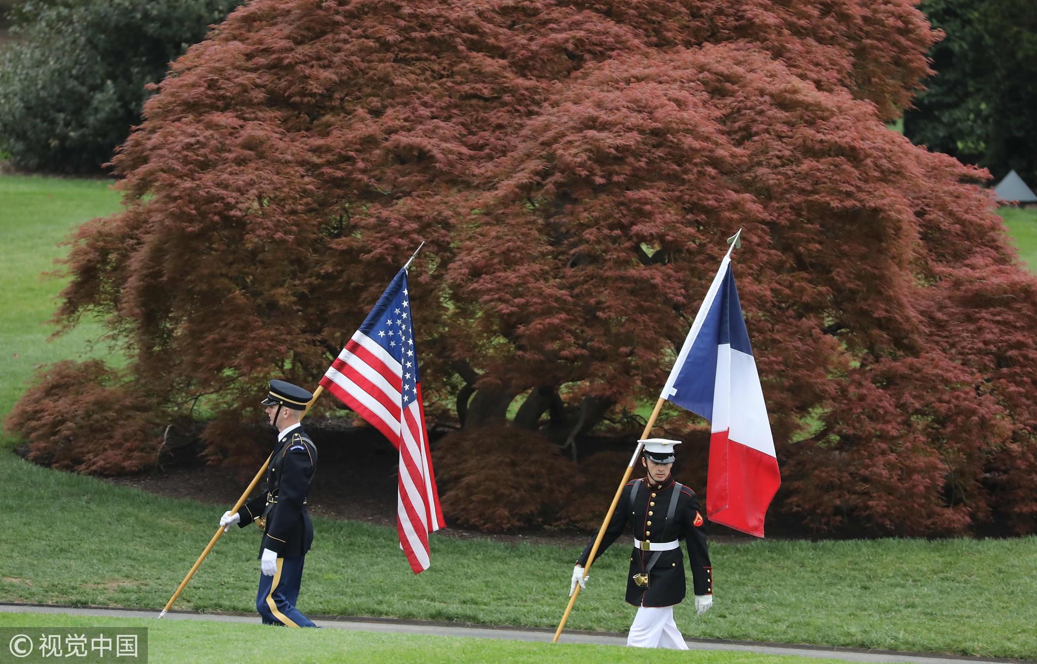 Honor guards prepare for the state welcome of French President Emmanuel Macron at the White House in Washington, DC, on April 24, 2018. /VCG Photo