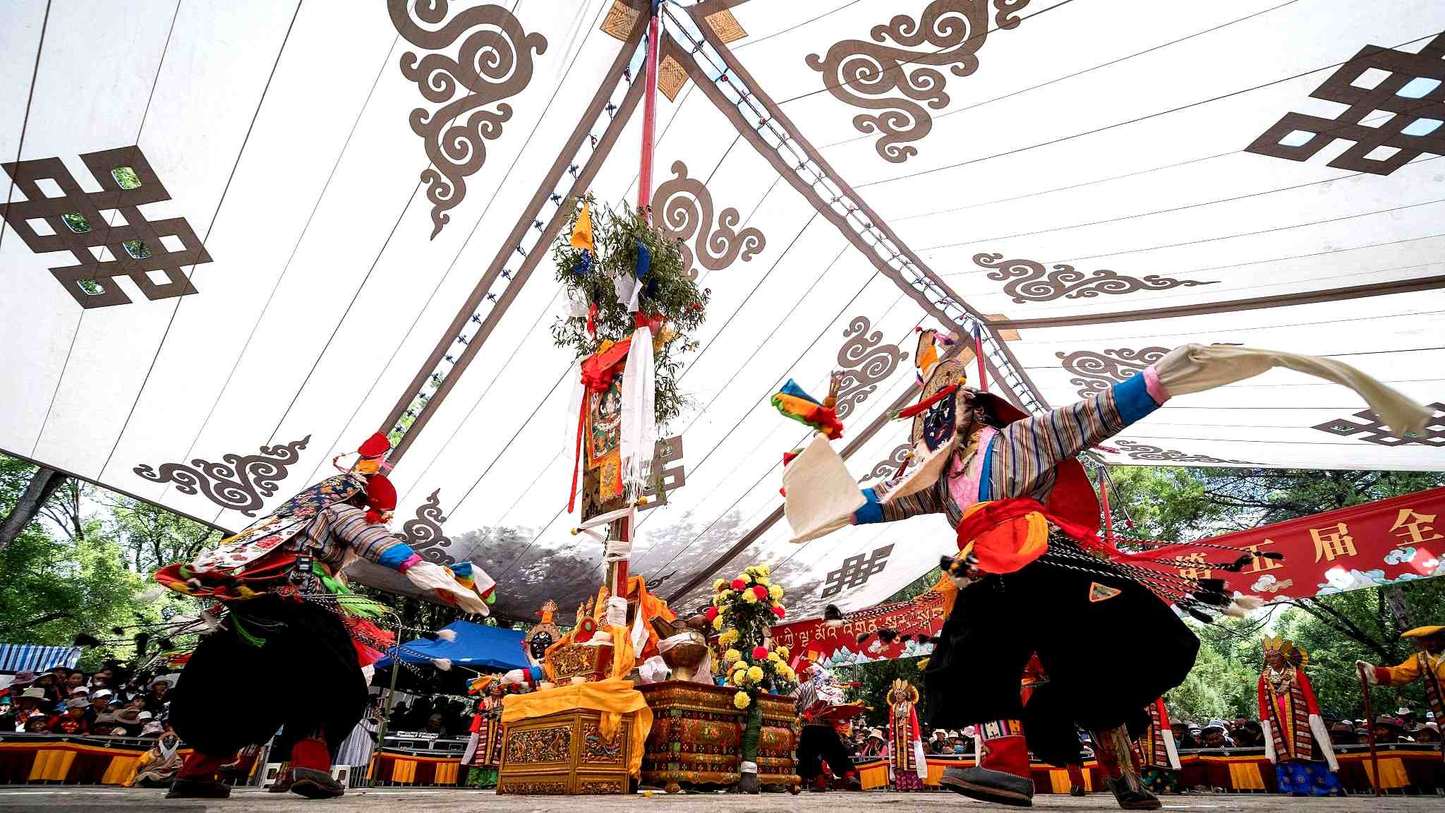 As the "living fossil" of Tibetan culture, the auspicious art tradition tells stories with the blending of abundant art forms, including music, dance, chanting, acrobatics, comedy, and drama.