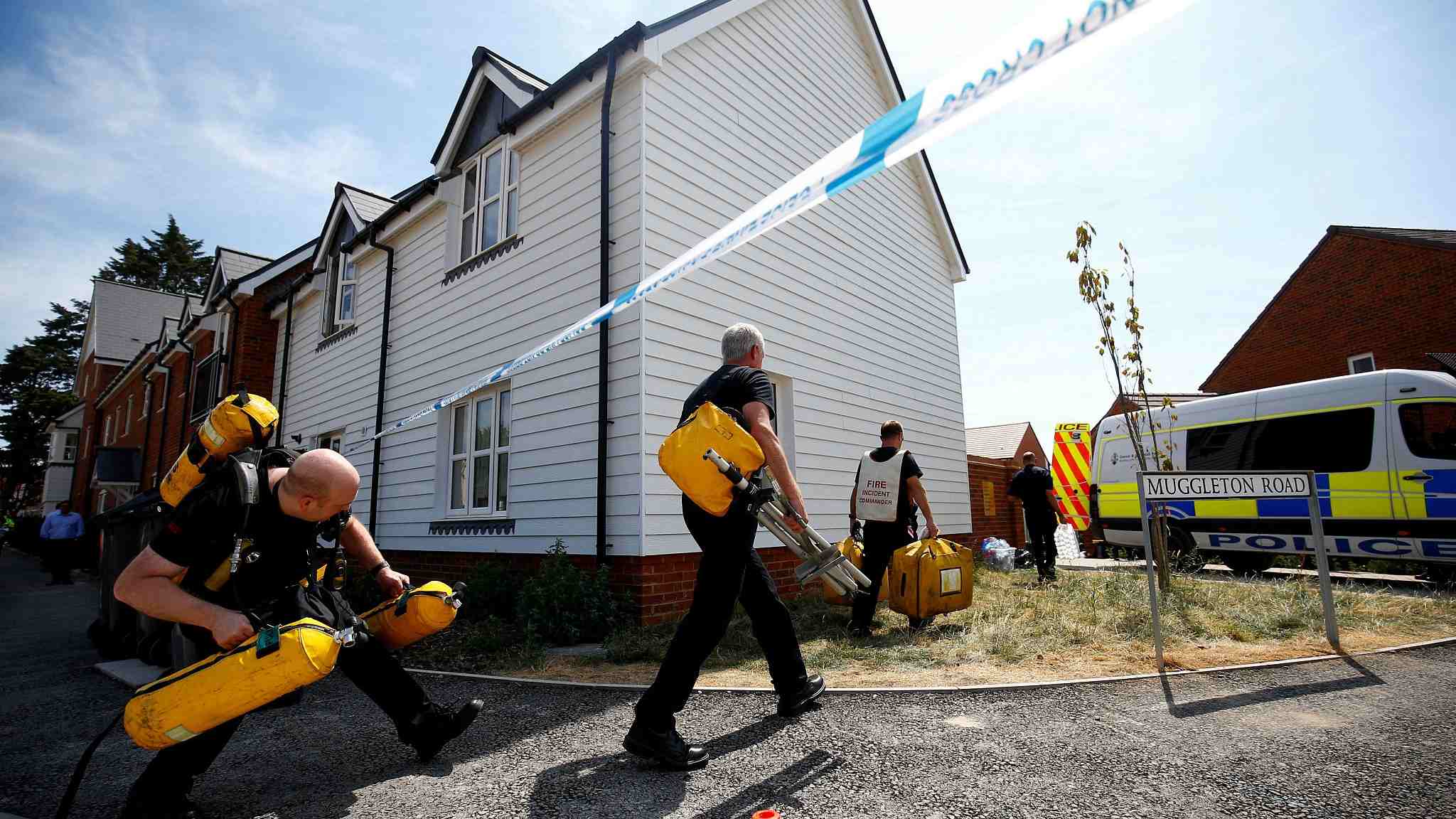 Fire and Rescue Service personnel arrive with safety equipment at the site of a housing estate on Muggleton Road, after it was confirmed that two people had been poisoned with the nerve-agent Novichok, in Amesbury, Britain, July 6, 2018. /VCG Photo