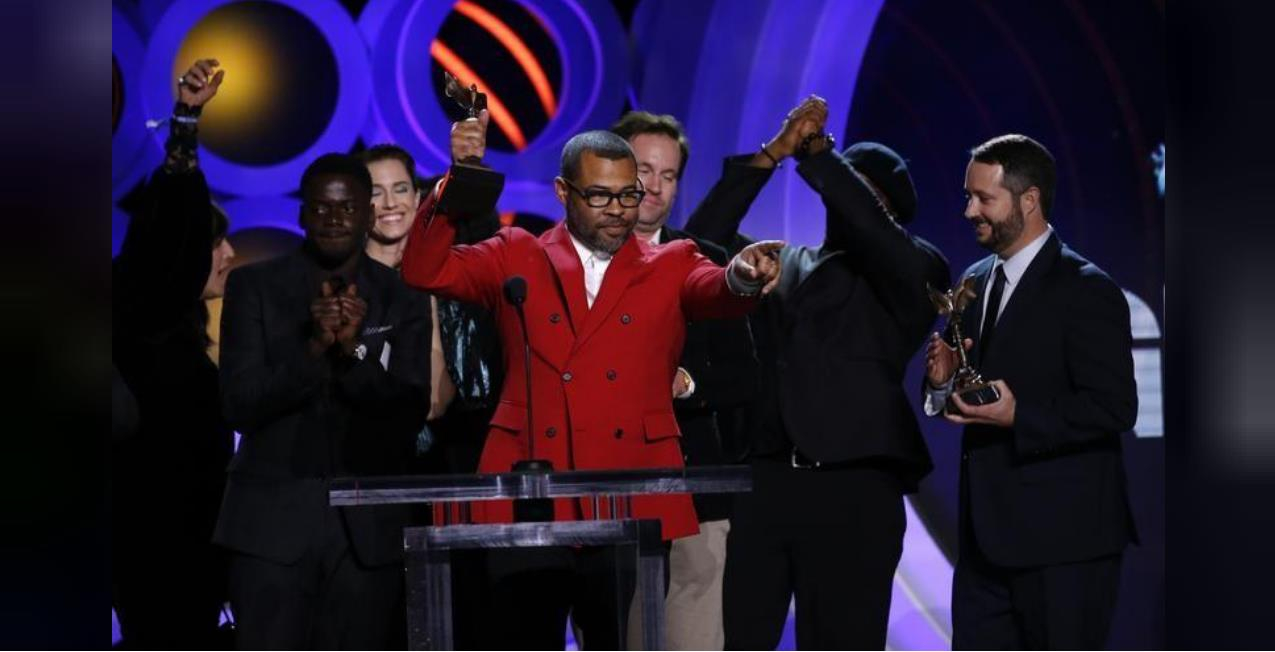 Producer and director Jordan Peele accepts the Best Feature Award accompanied by the cast of his film "Get Out" at 2018 Film Independent Spirit Awards, Santa Monica, California, US, March 3, 2018. / Reuters