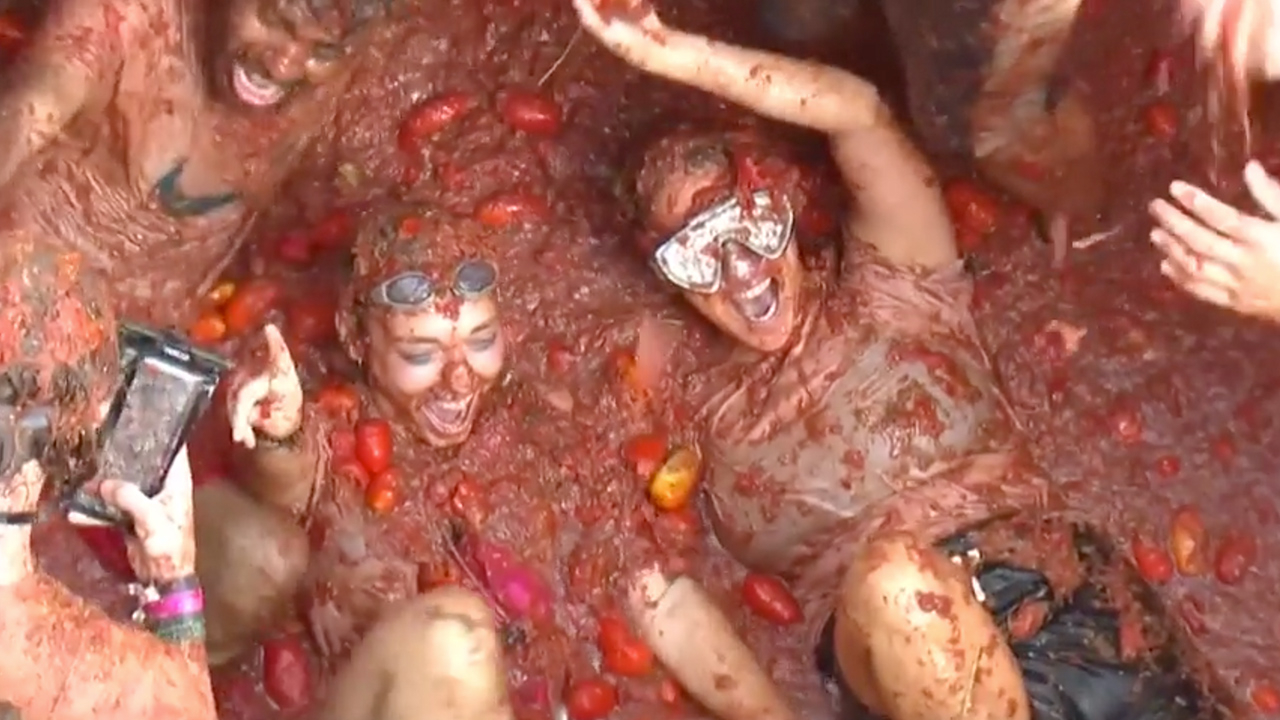 More than 20,000 people took part in one of Europe's most exuberant food fights on Wednesday, the annual "Tomatina" festival in Bunol in eastern Spain. The town was turned into a red zone for an hour as people from Spain and around the world pelted each other with ripe tomatoes, leaving the streets flowing with pulp.