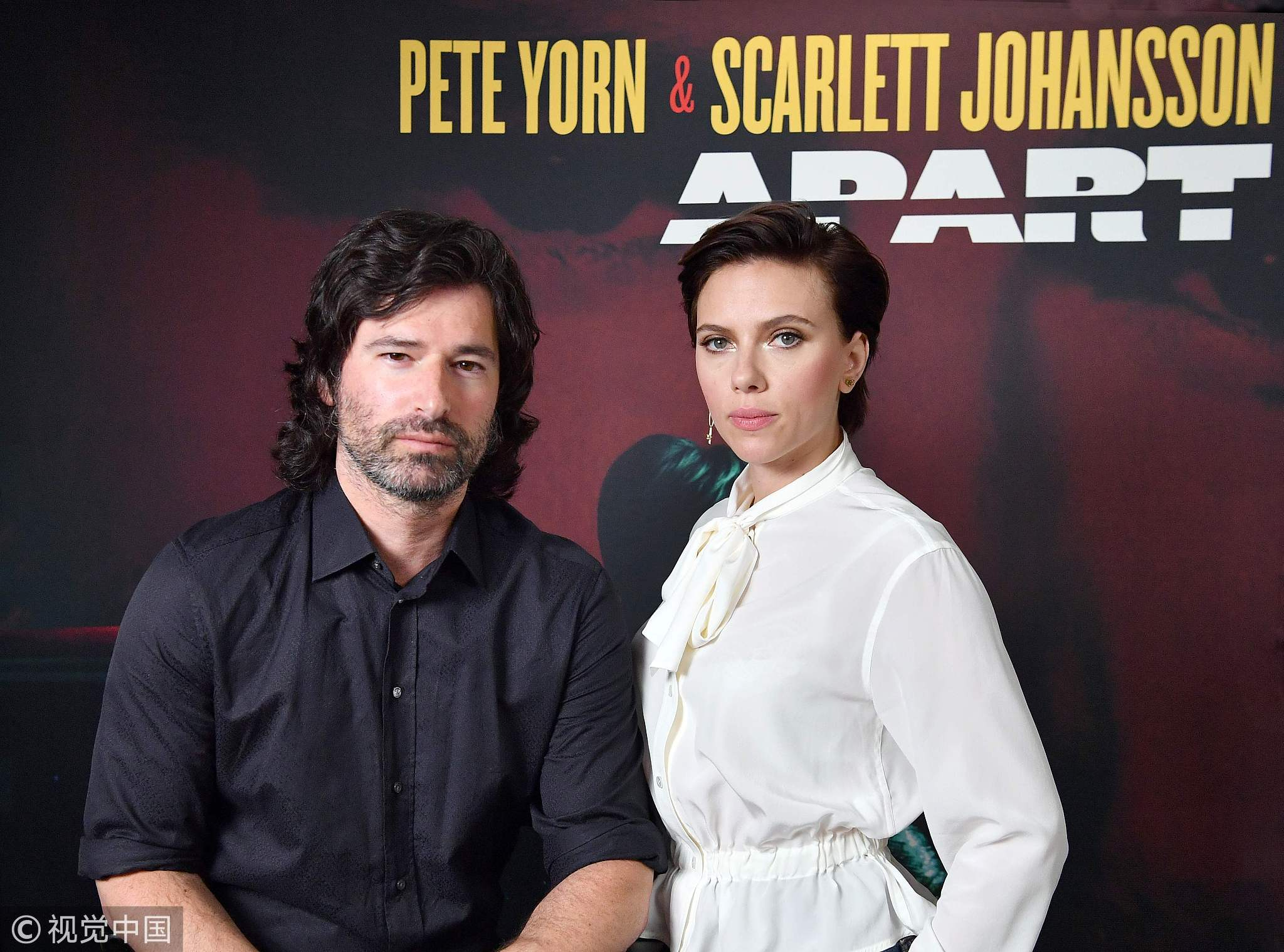 Pete Yorn and Scarlett Johansson pose for a picture as they announce the launch of their new extended play record "Apart," on May 22, 2018 in New York City. /VCG Photo