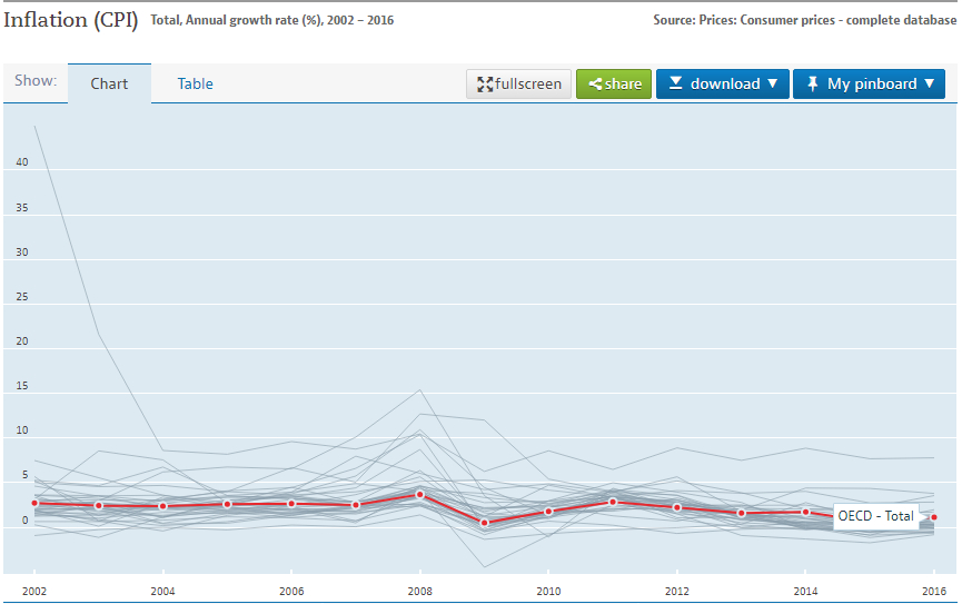Inflation chart of OCED countries from 2002 to 2016 from OCED.org.