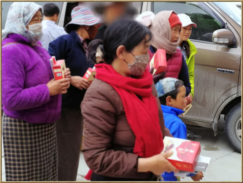 Villagers receive free medicine from the Shanghai medical team. Photo courtesy of Shanghai Pharmaceuticals Group.