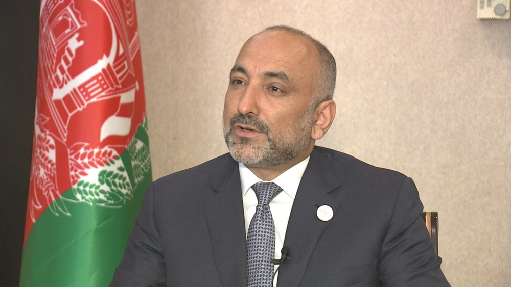 Mohammad Haneef Atmar, National Security Advisor of Afghanistan, speaks in an interview in Qingdao, China, June 10, 2018. /CGTN Photo