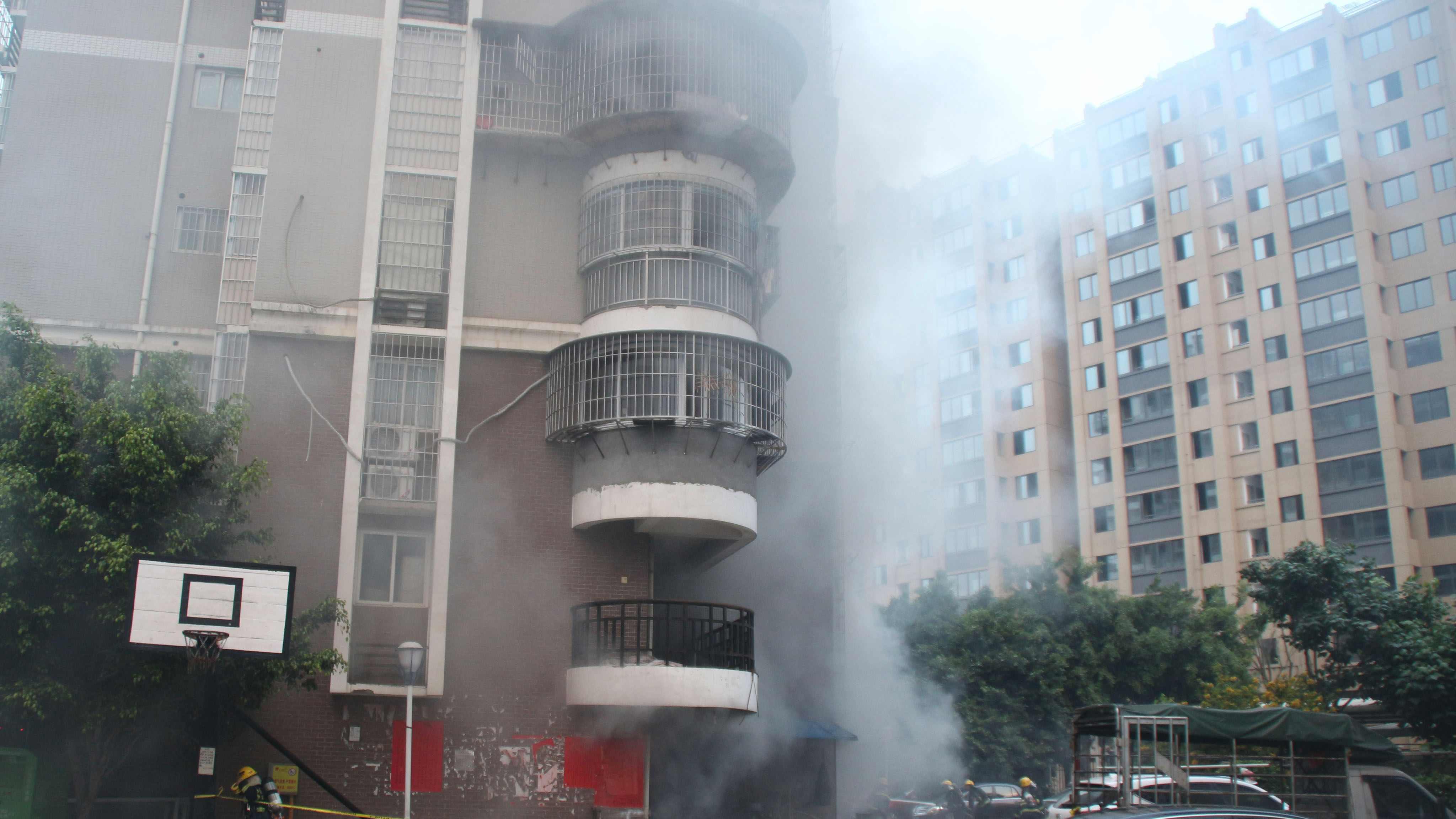 A residential building caught fire on May 12 in east China’s Fujian Province. It could have been caused by a damaged gas pipe, but is still under investigation.