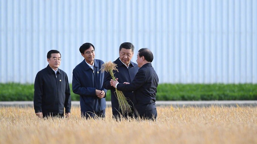 Chinese President Xi Jinping on Tuesday arrived in northeast China's Heilongjiang Province for an inspection tour. Xi started his tour Tuesday afternoon at the Jiansanjiang branch of Heilongjiang Farms and Land Reclamation Administration to inspect the conditions of grain production and harvest. Known as China's "green rice city," Jiansanjiang is one of the most important commodity grain bases in the country.