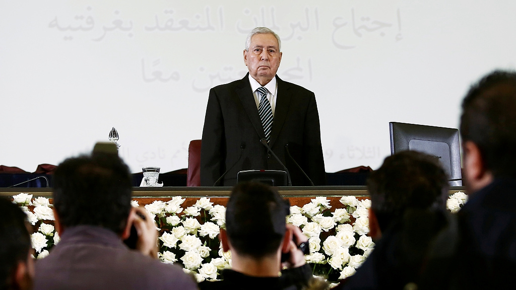 (Top image: Algerian upper house chairman Abdelkader Bensalah is pictured after being appointed as interim president by Algeria's parliament, in Algiers, Algeria, April 9, 2019. /VCG Photo)