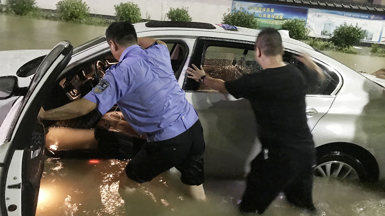 Rainstorms triggered by the typhoon Jongdari, flooded an electroplate industrial park and caused several companies to close down in the city of Ningbo, east China's Zhejiang Province on Friday. Jongdari is the 12th typhoon this year.