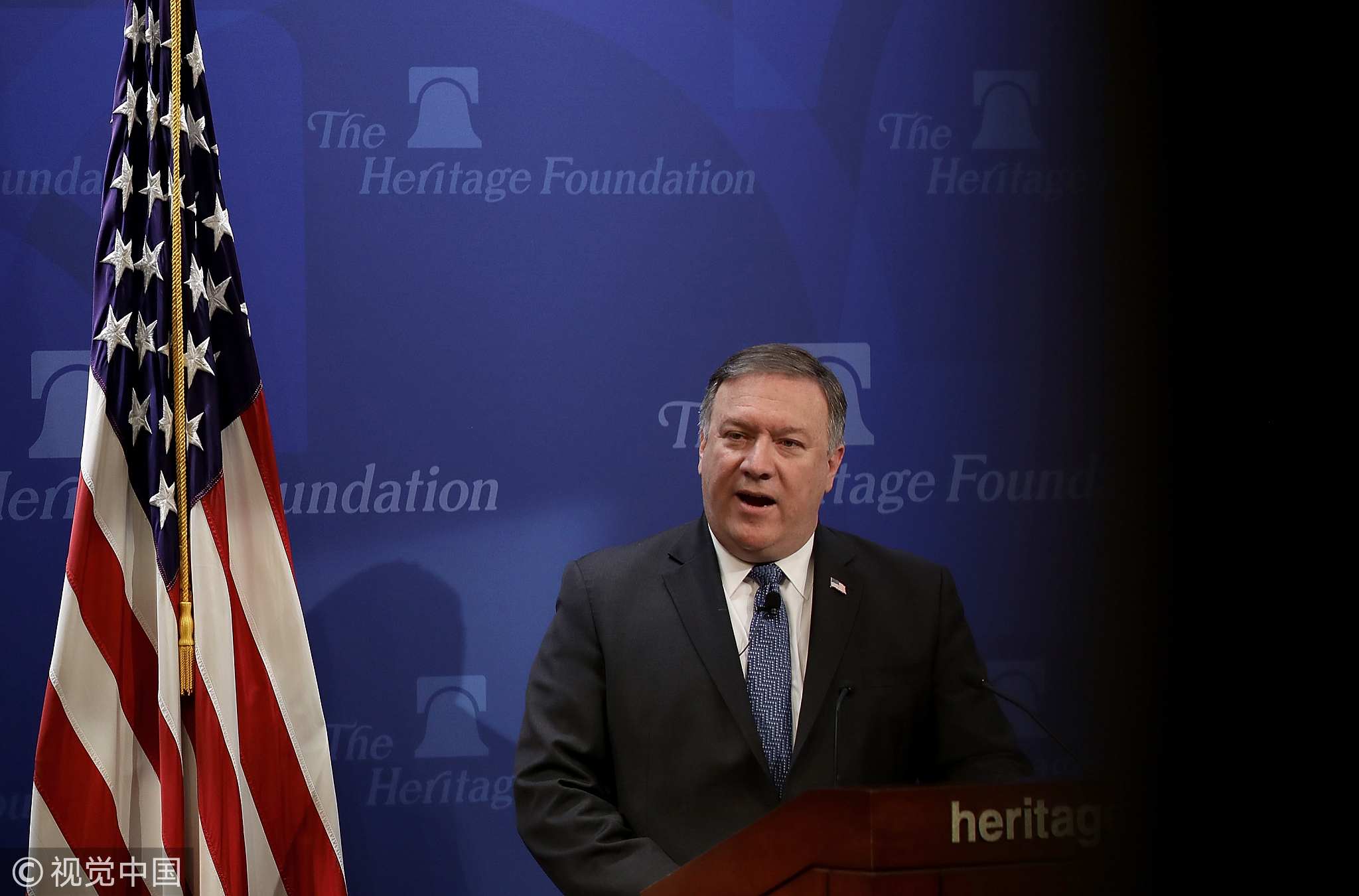 US Secretary of State Mike Pompeo speaks at the Heritage Foundation May 21, 2018 in Washington, DC. /VCG Photo