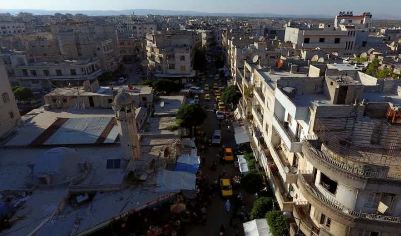 A general view taken with a drone shows part of the rebel-held Idlib city, Syria, June 8, 2017. /Reuters Photo