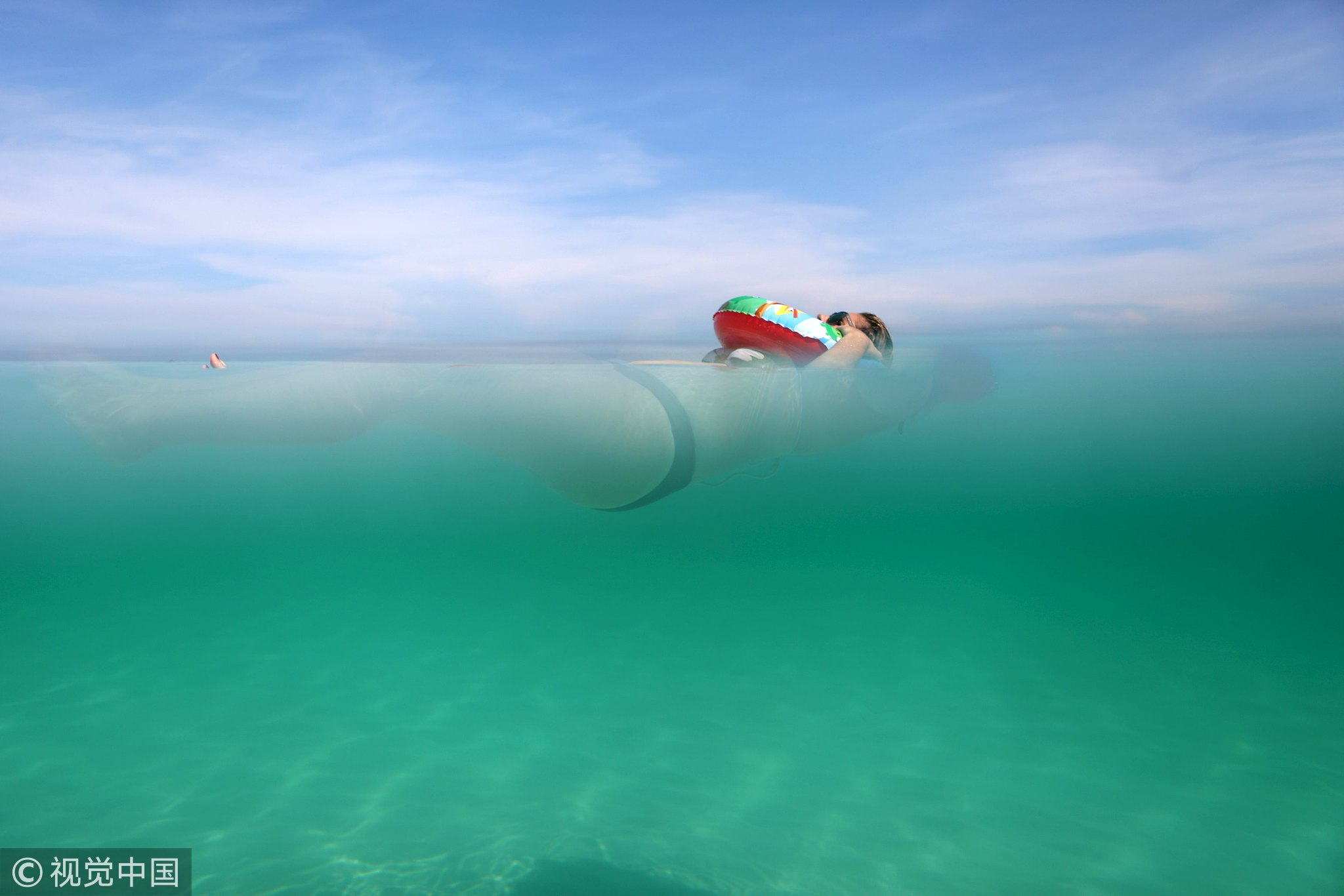 A woman swims in the waters off Varadero, Cuba, August 26, 2015. /VCG Photo
