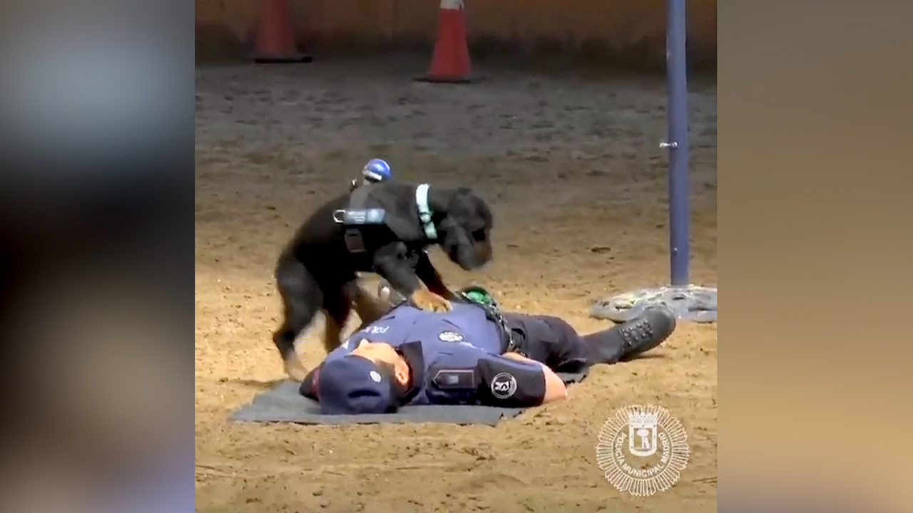 Poncho, a Madrid police dog, has become an Internet sensation after a video showing him apparently performing CPR on his handler went viral. The video has received more than two million views since it was published on the Madrid police's twitter account @policiademadrid on June 22.