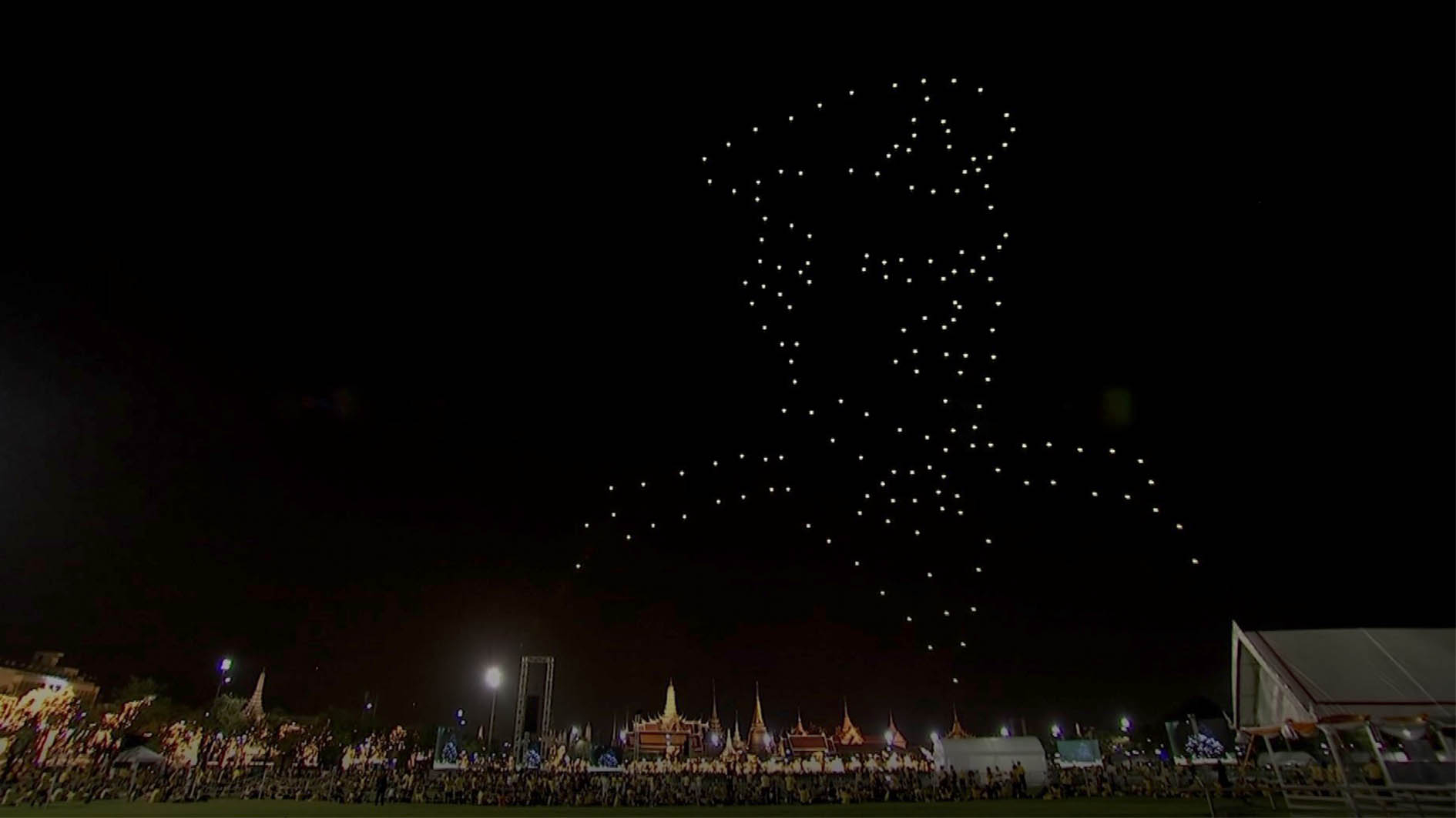 An enchanting drone light show was held to celebrate the completion of the coronation ceremony for Thailand's new King Maha Vajiralongkorn, who was formally crowned as divine monarch on May 4. The drones were sent up into the sky in a display of multiple images, including a map of Thailand, a picture of the king and "Long Live the King" phrase.
