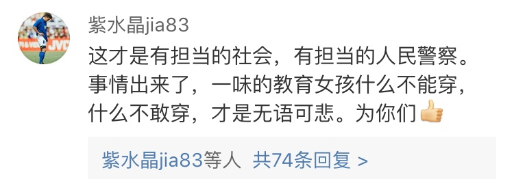 “This is a responsible society and they are responsible policemen. Telling girls what should or should not be worn is pathetic,” commented another user @zishuijingjia83 on Sina Weibo.