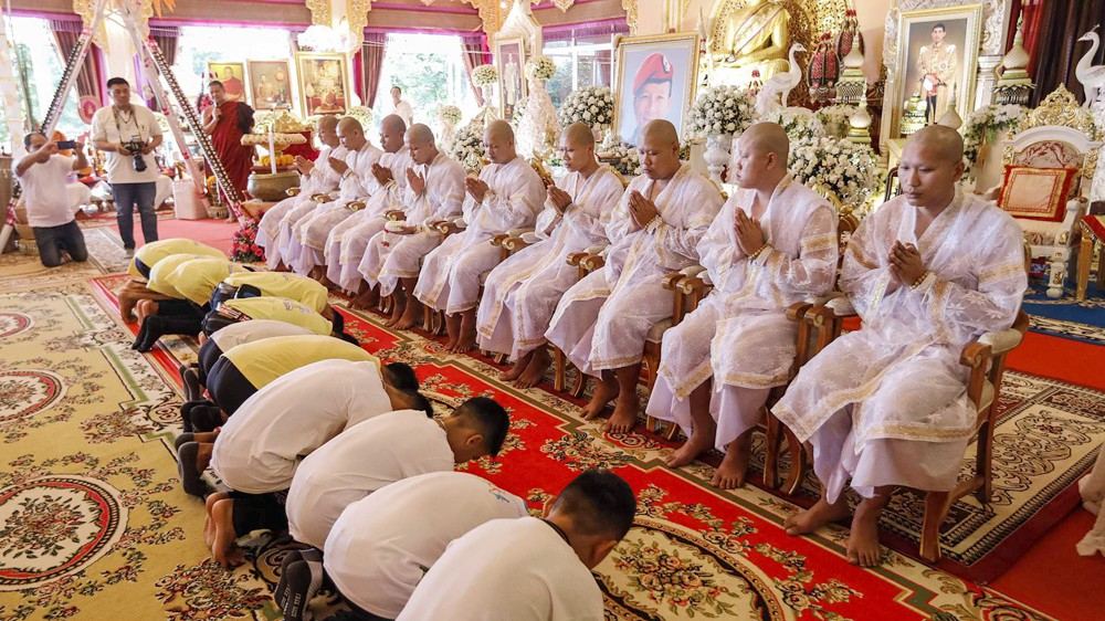The occasion was broadcast live on Facebook by local authorities and starts a process whereby the boys will live for nine days in a Buddhist temple – a promise made by their families in thanks for their safe return and in memory of