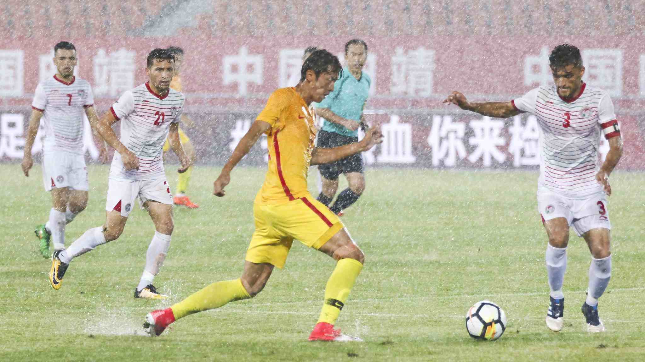 In the second half, the rain was heavier while China began to take the control. In 70th minute, China got a free-kick to seize the chance. Xie Weijun jumped up and headed the ball to the net. China made it 1-1.