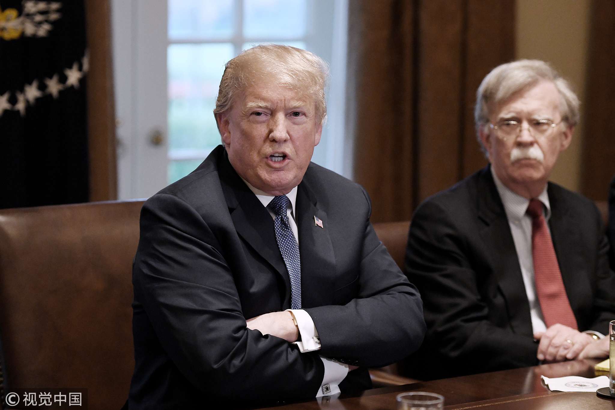 US President Donald Trump talks about the FBI raid at his lawyer Michael Cohen's office during a briefing from Senior Military Leadership in the Cabinet Room of the White House, on April 9, 2018 in Washington, DC. /VCG Photo