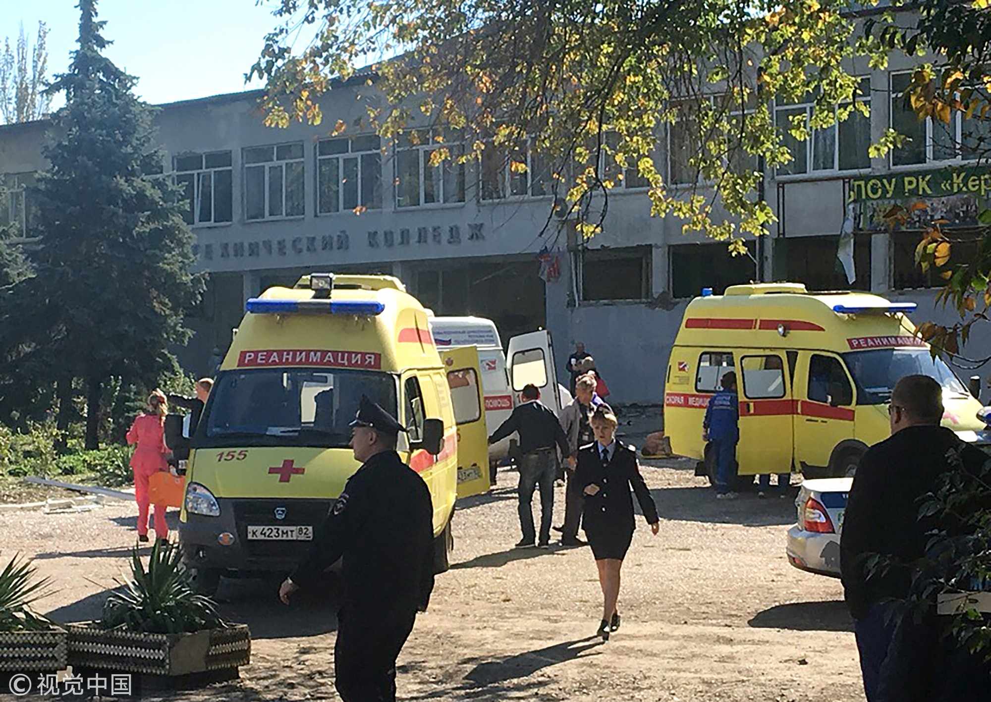 The site of a bomb blast at a college in the Crimean city of Kerch, October 17, 2018 /VCG Photo