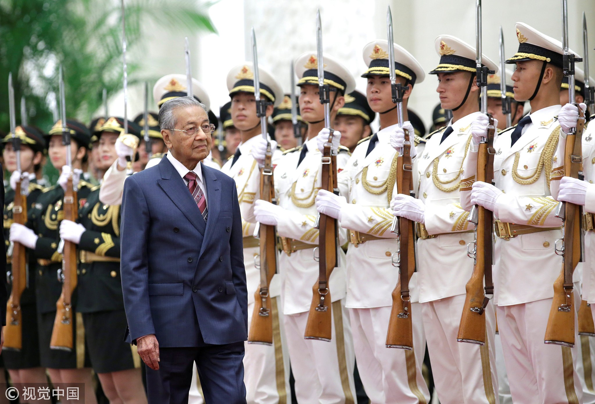 Malaysian Prime Minister Mahathir Mohamad attends a welcome ceremony hosted by China's Premier Li Keqiang at the Great Hall of the People in Beijing on August 20, 2018. /VCG Photo