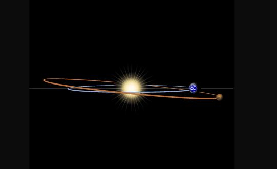 Illustration of the orbits of Mars and Earth around the Sun during Close Approach. /NASA Photo