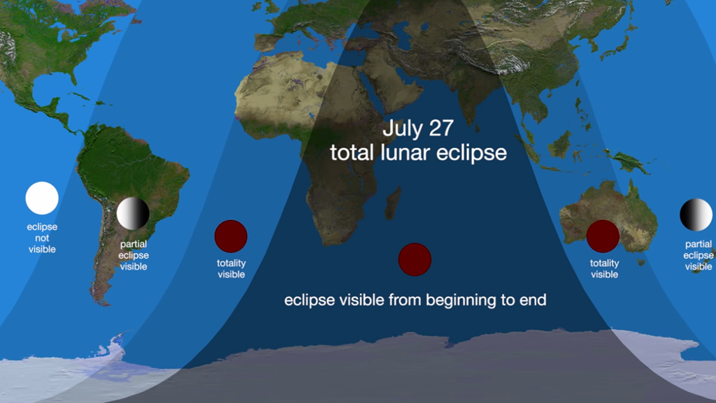 The upcoming lunar event will be visible from Europe, Africa and the Middle East between sunset and midnight on July 27 and then between midnight and sunrise on July 28 in much of Asia and Australia.