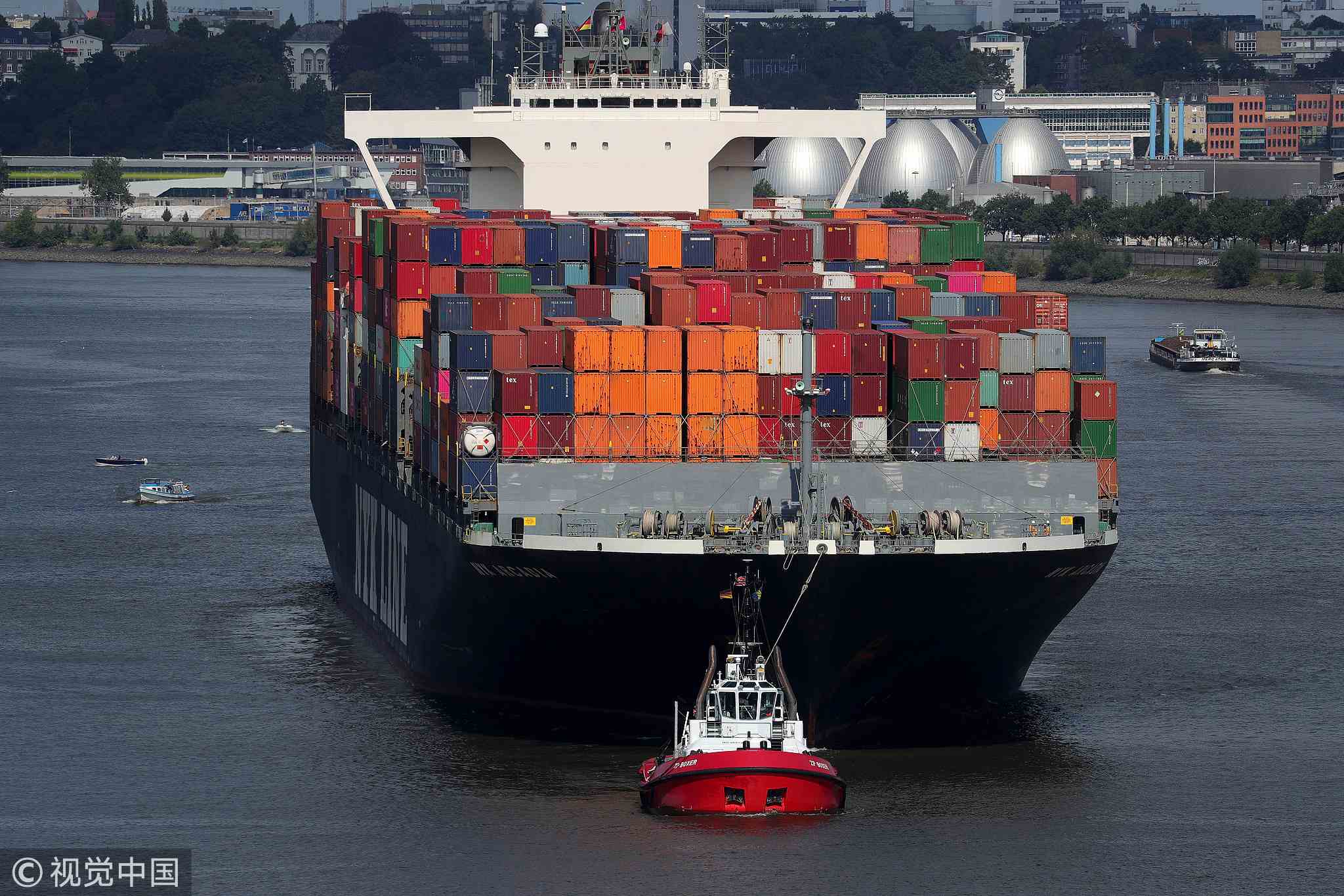 A container ship arrives at the port of Hamburg, Germany, on Sunday, September 2, 2018. /VCG Photo