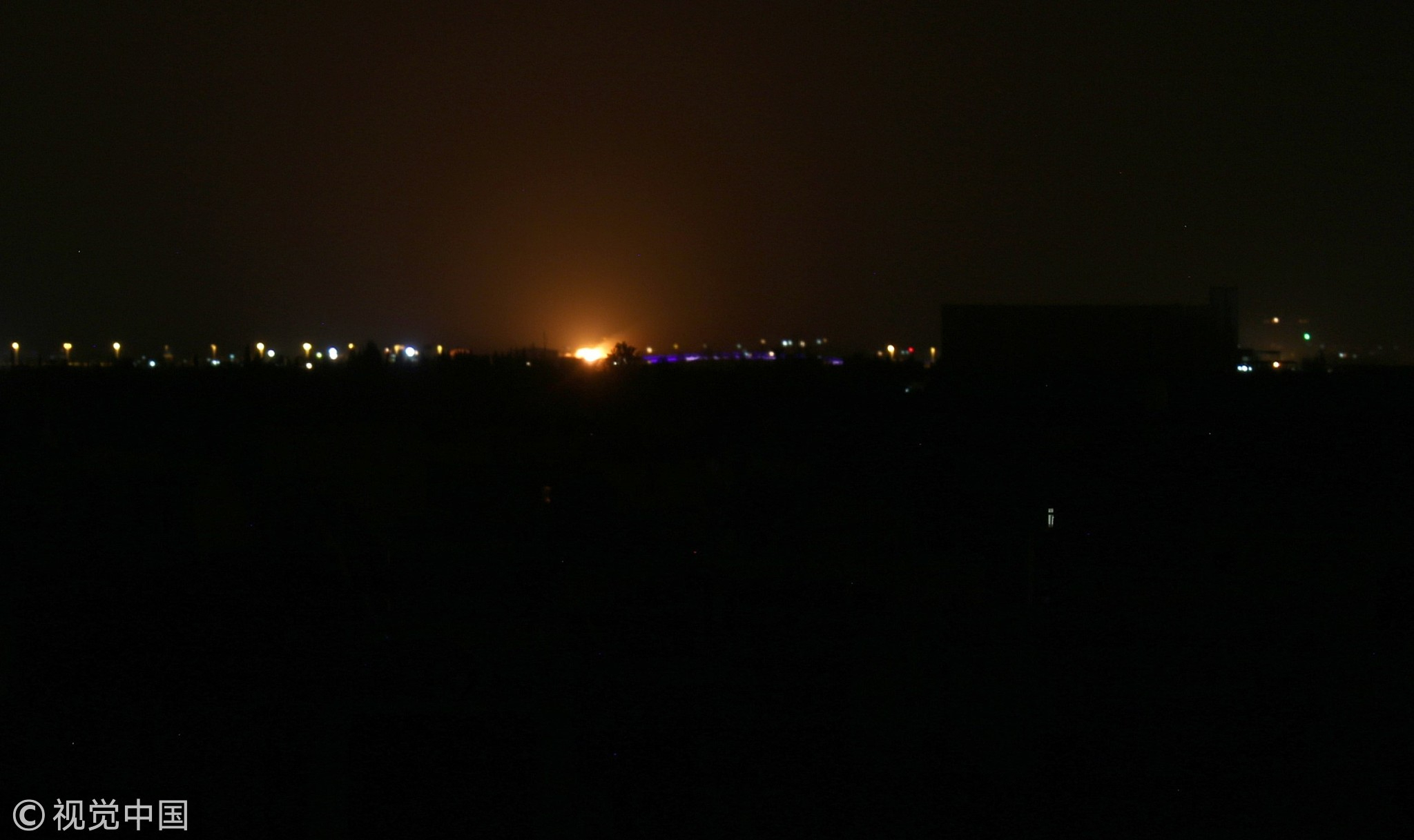 Flare is seen after Israeli jets carried out airstrikes over Damascus International Airport in Damascus, Syria on April 27, 2017. /VCG Photo