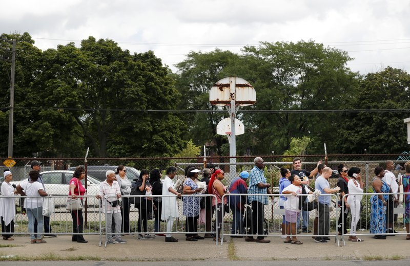 People stand in a line stretching for blocks outside New Bethel Baptist Church to pay their respects to legendary singer Aretha Franklin Thursday, Aug. 30, 2018, in Detroit. /AP Photo
