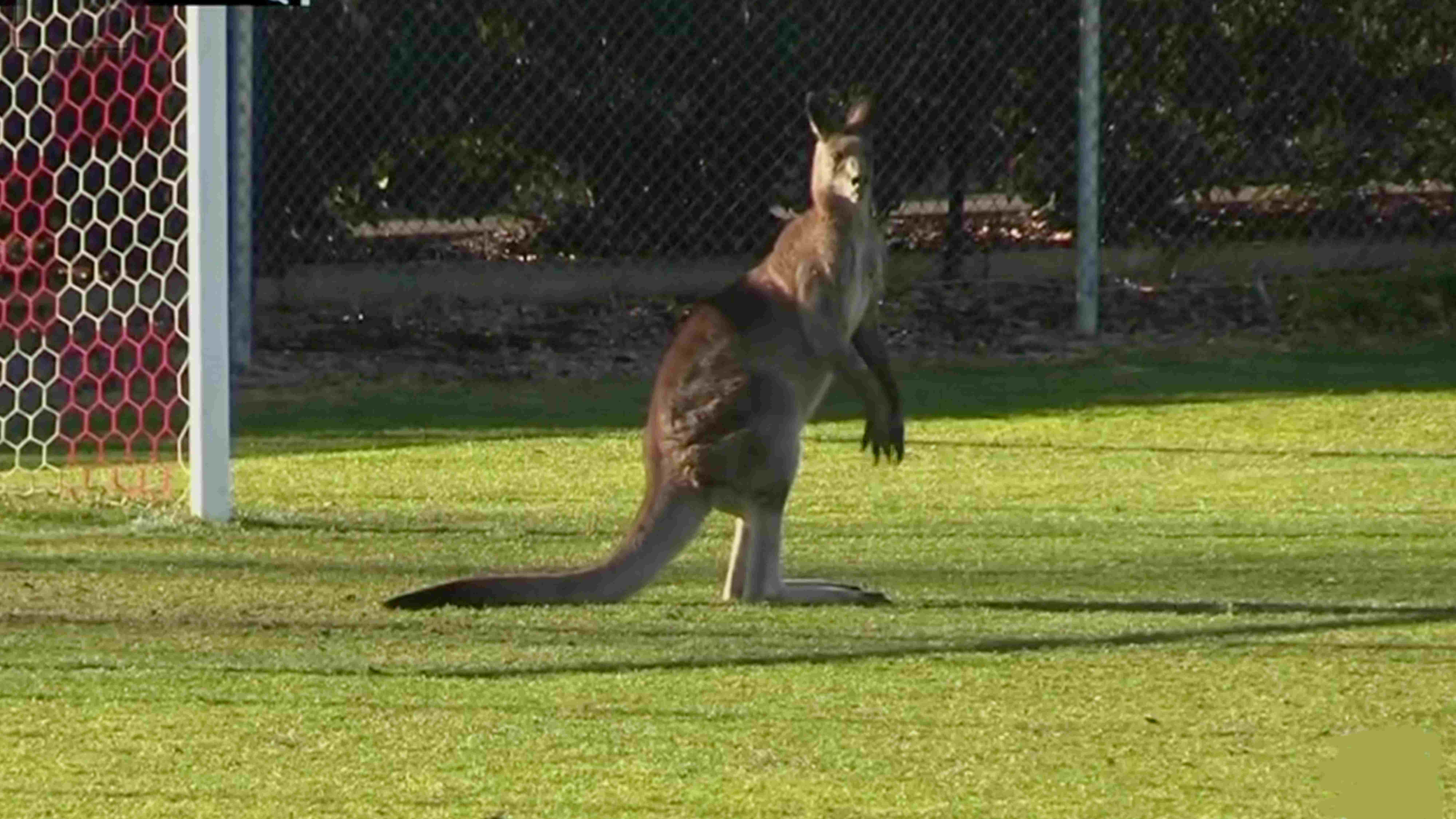 Unexpected guest: A kangaroo invaded a football match in Australia’s Canberra on Sunday and refused to leave.