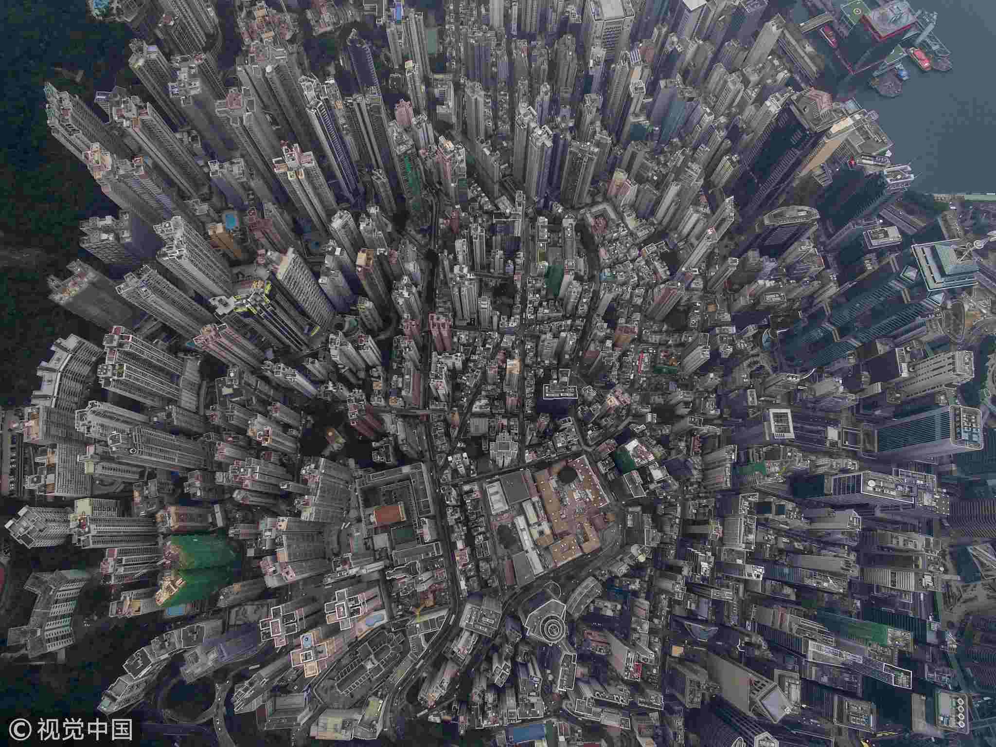 An aerial view of Wanchai, Hong Kong Island, one of the most densely populated urban districts on Earth. /VCG Photo