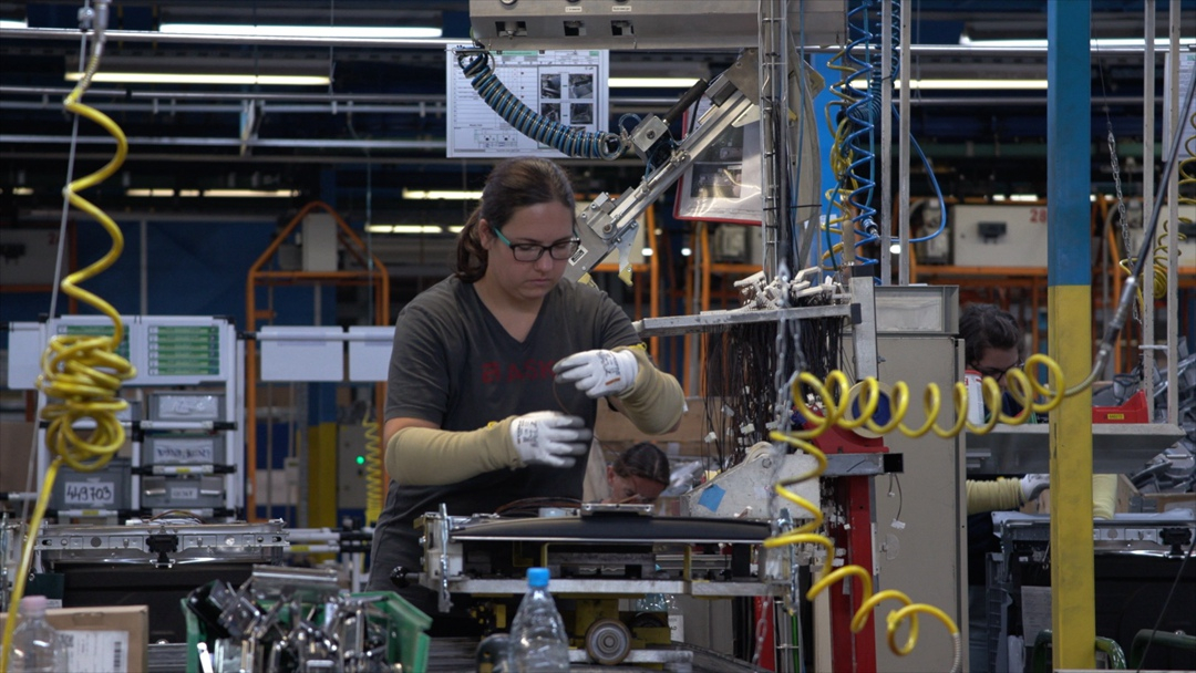 A worker at the production line in Gorenje factory in Velenje, Slovenia. /CGTN Photo
