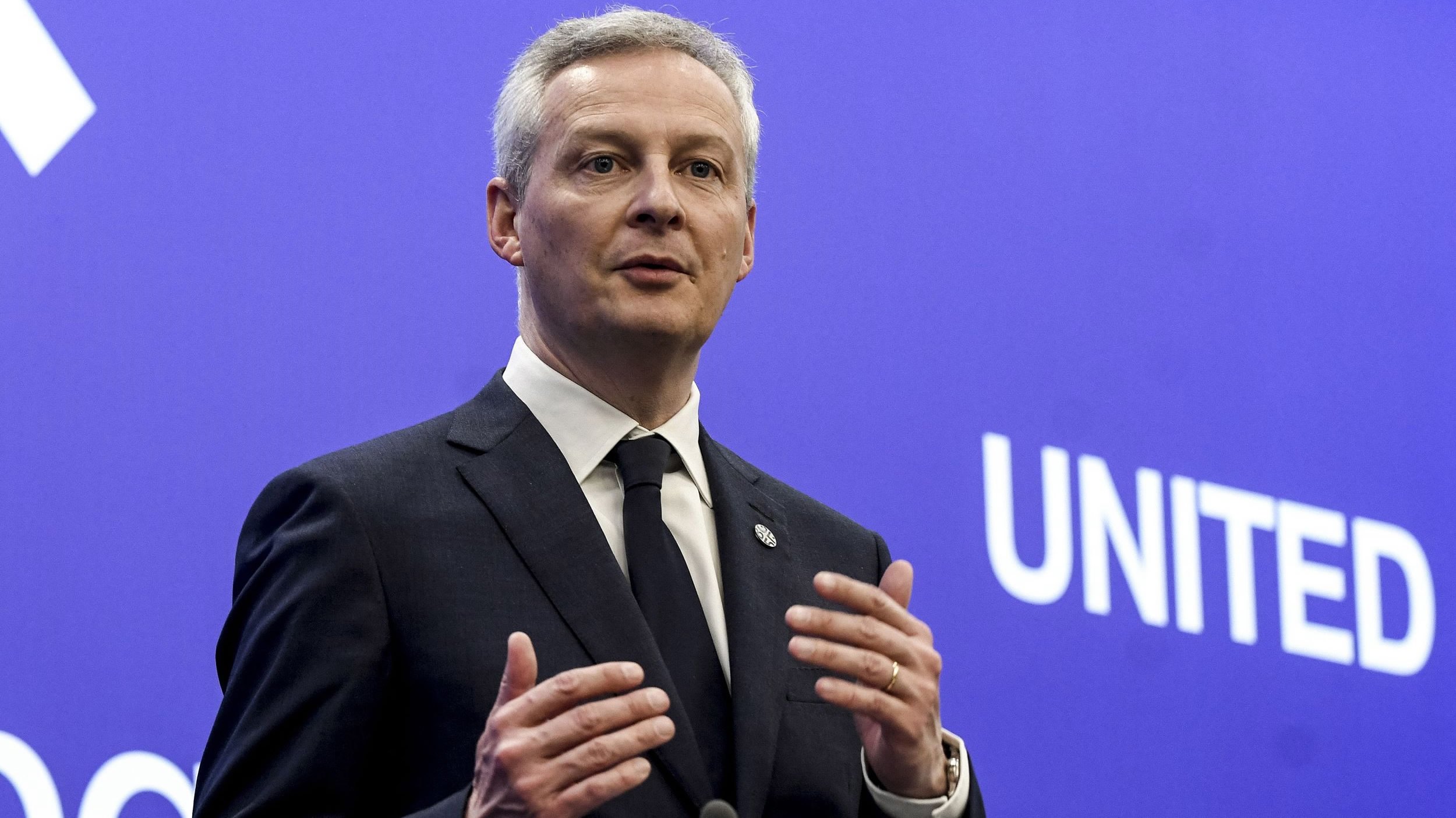 French Finance Minister Bruno Le Maire speaks at an informal meeting of economic and financial affairs ministers (ECOFIN) at the National Palace of Culture in Sofia, April 28, 2018.