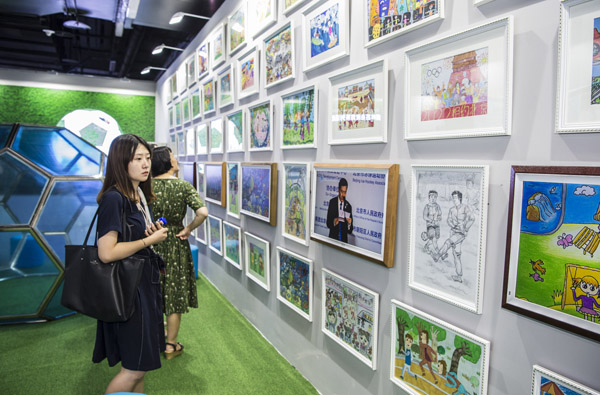 Visitors look at photos that review the heritage of the Olympics. /Chinadaily Photo
