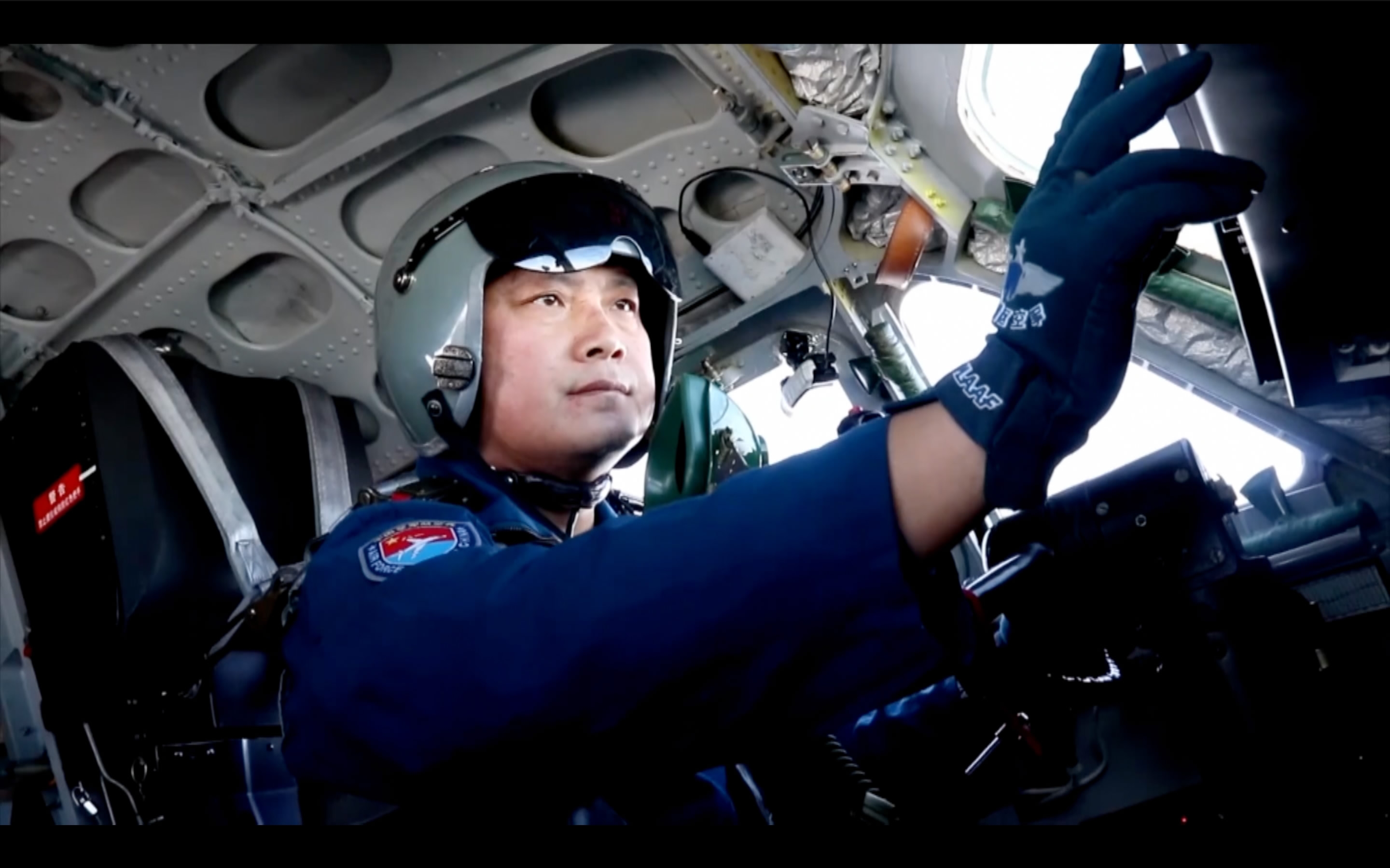H-6K bomber pilot on patrol around Taiwan Island. /CGTN Photo