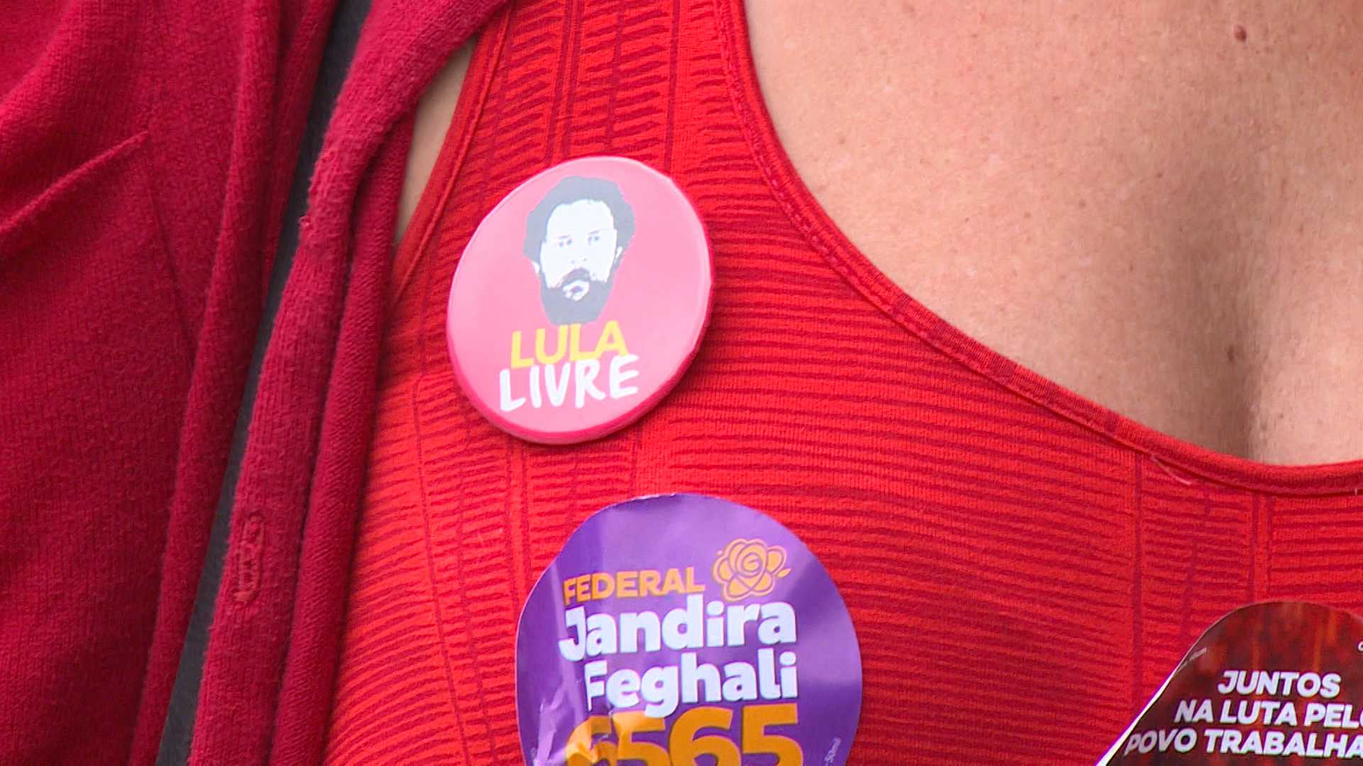 A Rocinha voter wears a free Lula button. /CGTN Photo