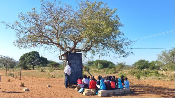 At Uambalambate Primary School in the Moamba District of Maputo Province, students have been learning in the open air for the past two years, as a result of inadequate funding from the government. Their families, about 500 of them in total, were relocated from the capital Maputo to make space for the construction of a bridge.