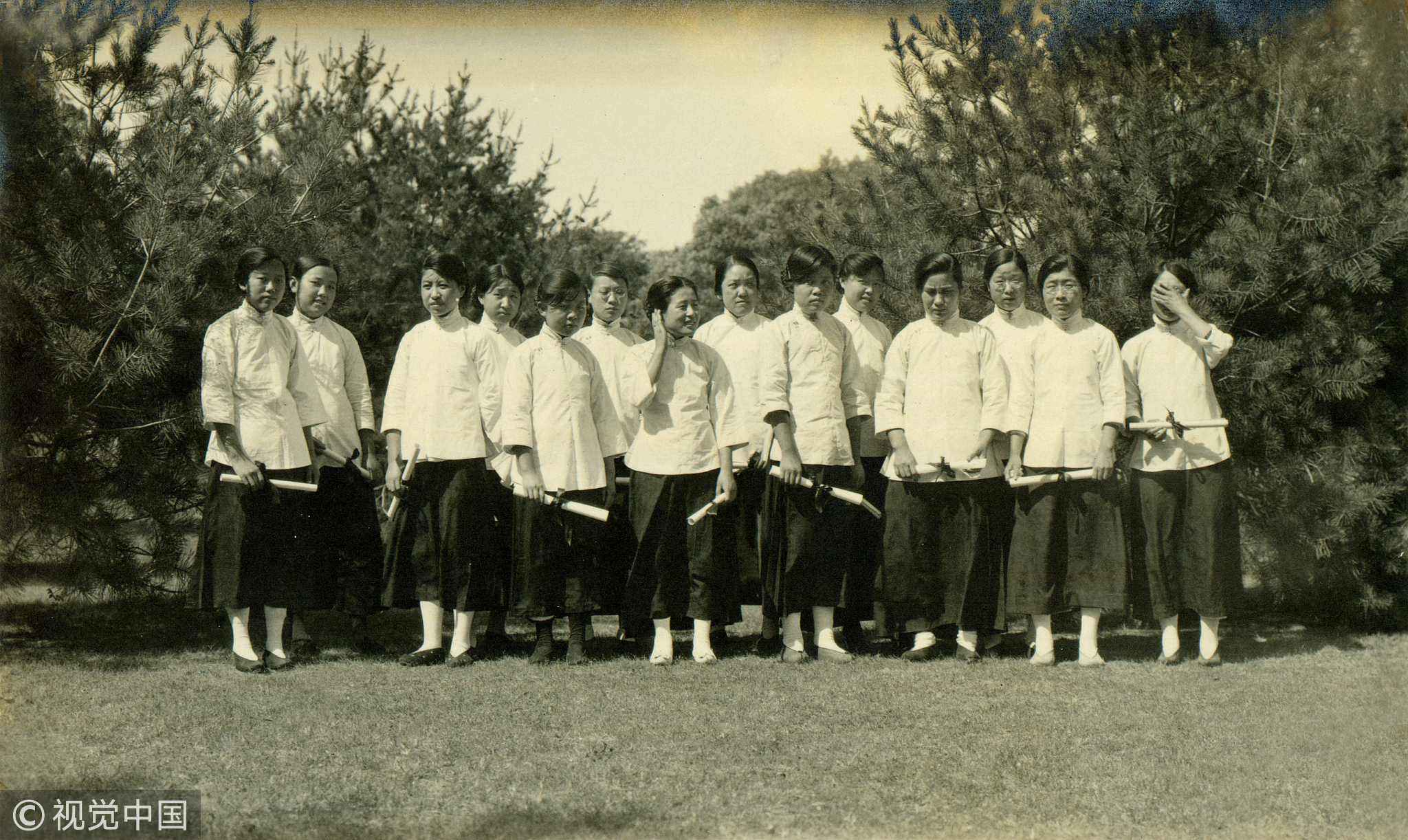14 graduation female students taking the photo in Nanjing in the 1920's China. /VCG Photo