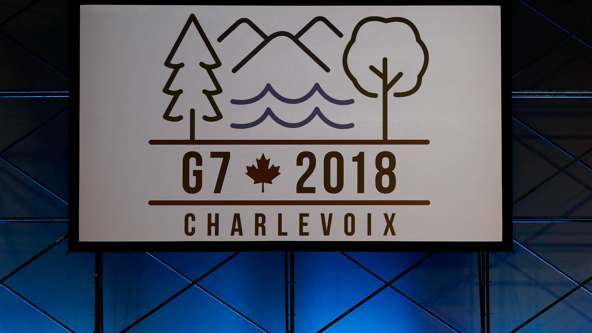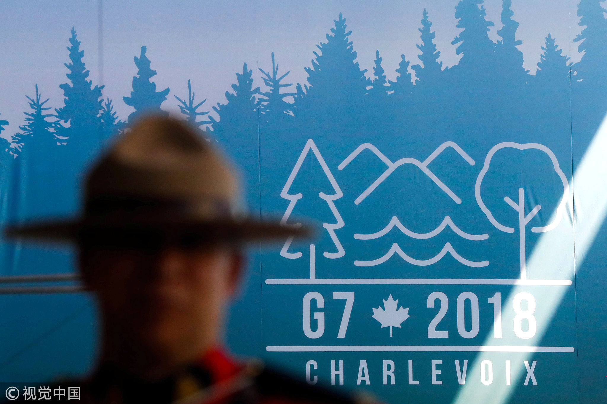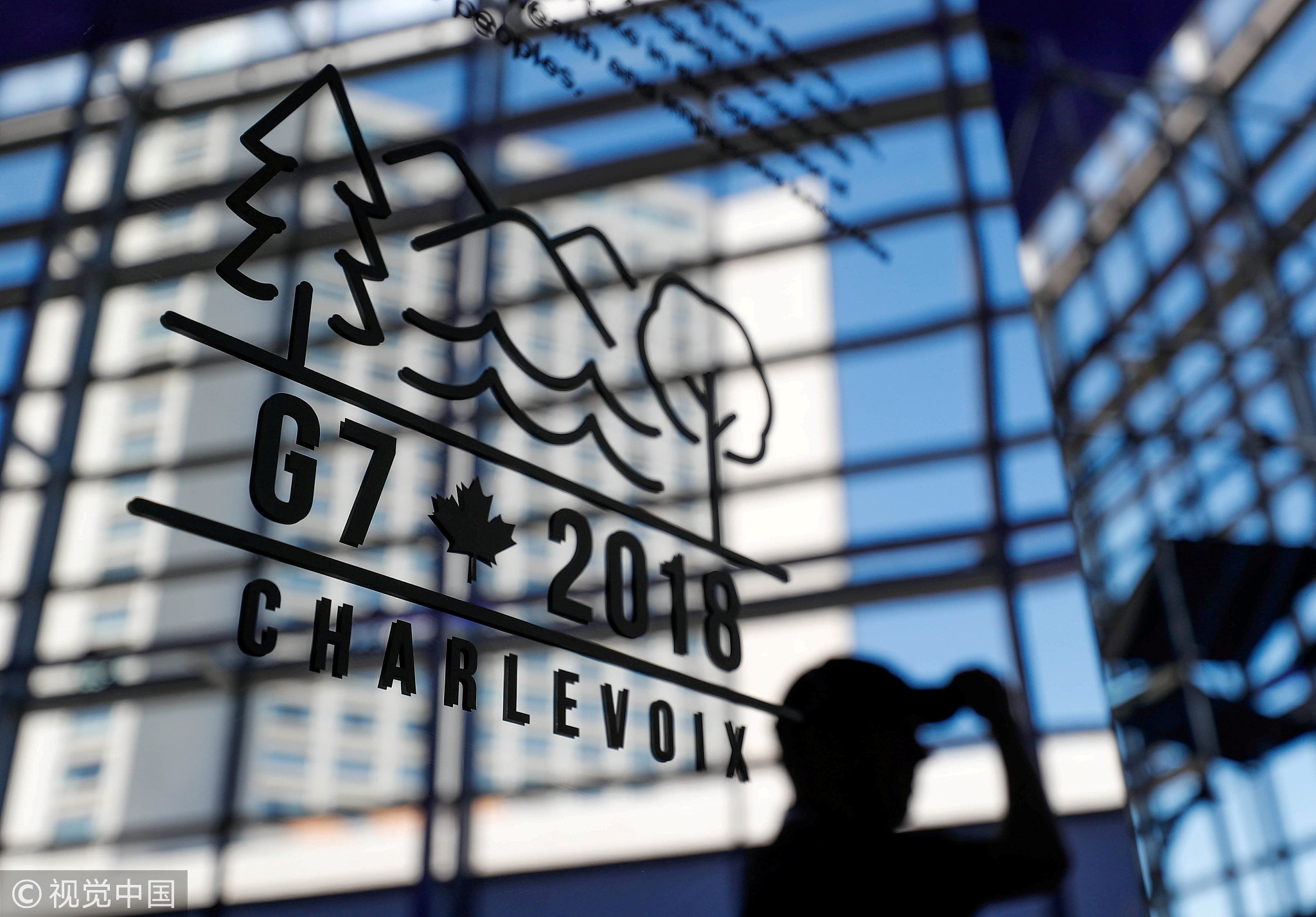 June 6, 2018: The Charlevoix G7 logo at the main press center ahead of the G7 Summit in Quebec, Canada./ VCG Photo