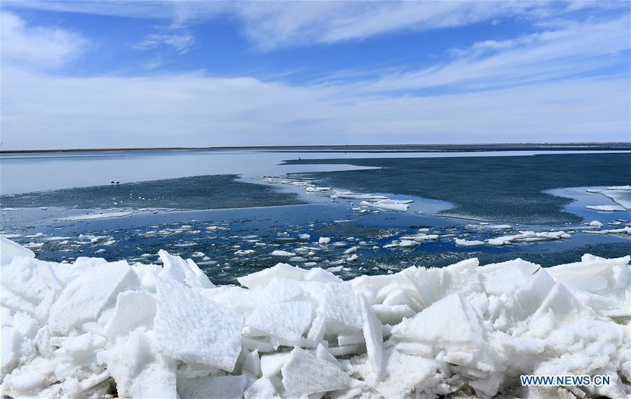 Qinghai Lake in northwest China starts to melt in mid-April. /Xinhua Photo
